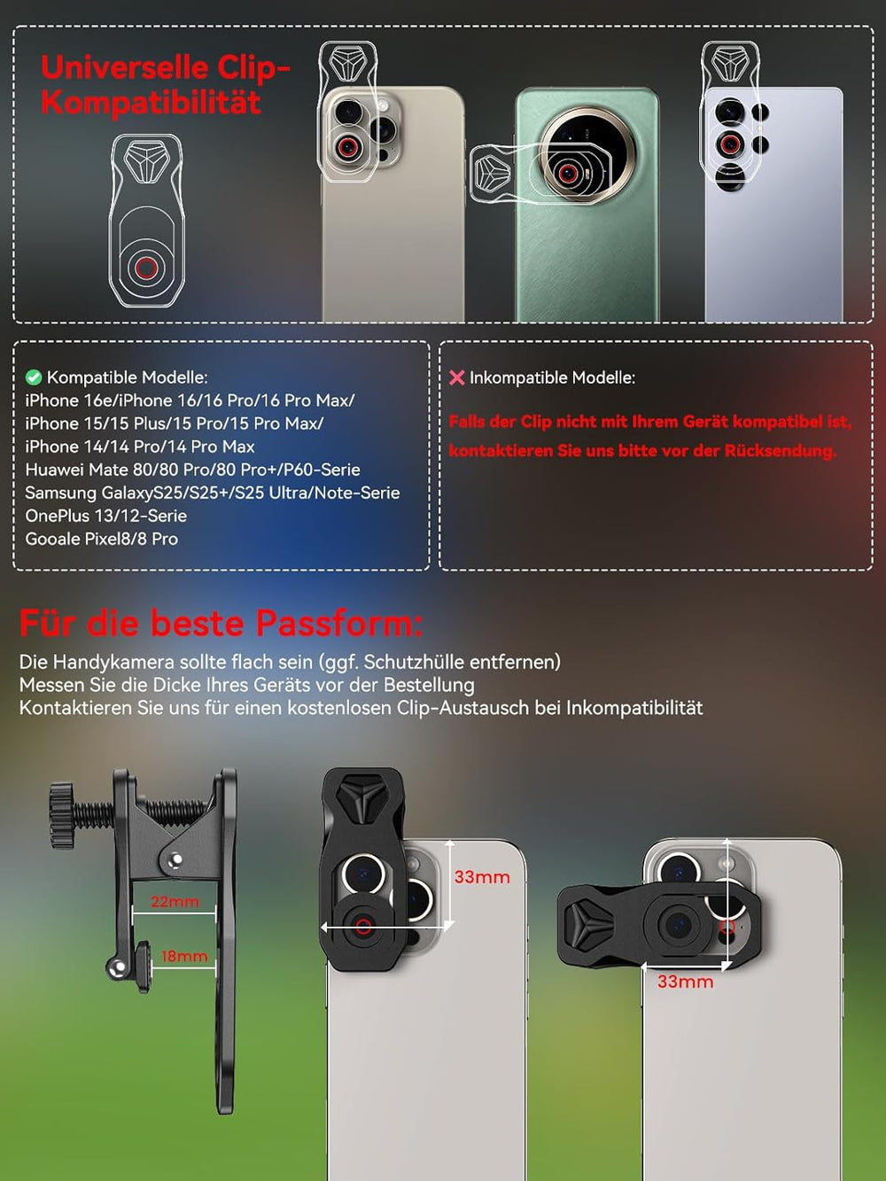 - Verbessertes Teleobjektiv: Überwinden Sie die Mängel von Mobiltelefonen, die nur Nahaufnahmen machen können, erfassen Sie die Landschaft aus der Ferne und liefern Sie eine hochauflösende Nahaufnahme. Damit die Fernsicht klar in Ihren Augen