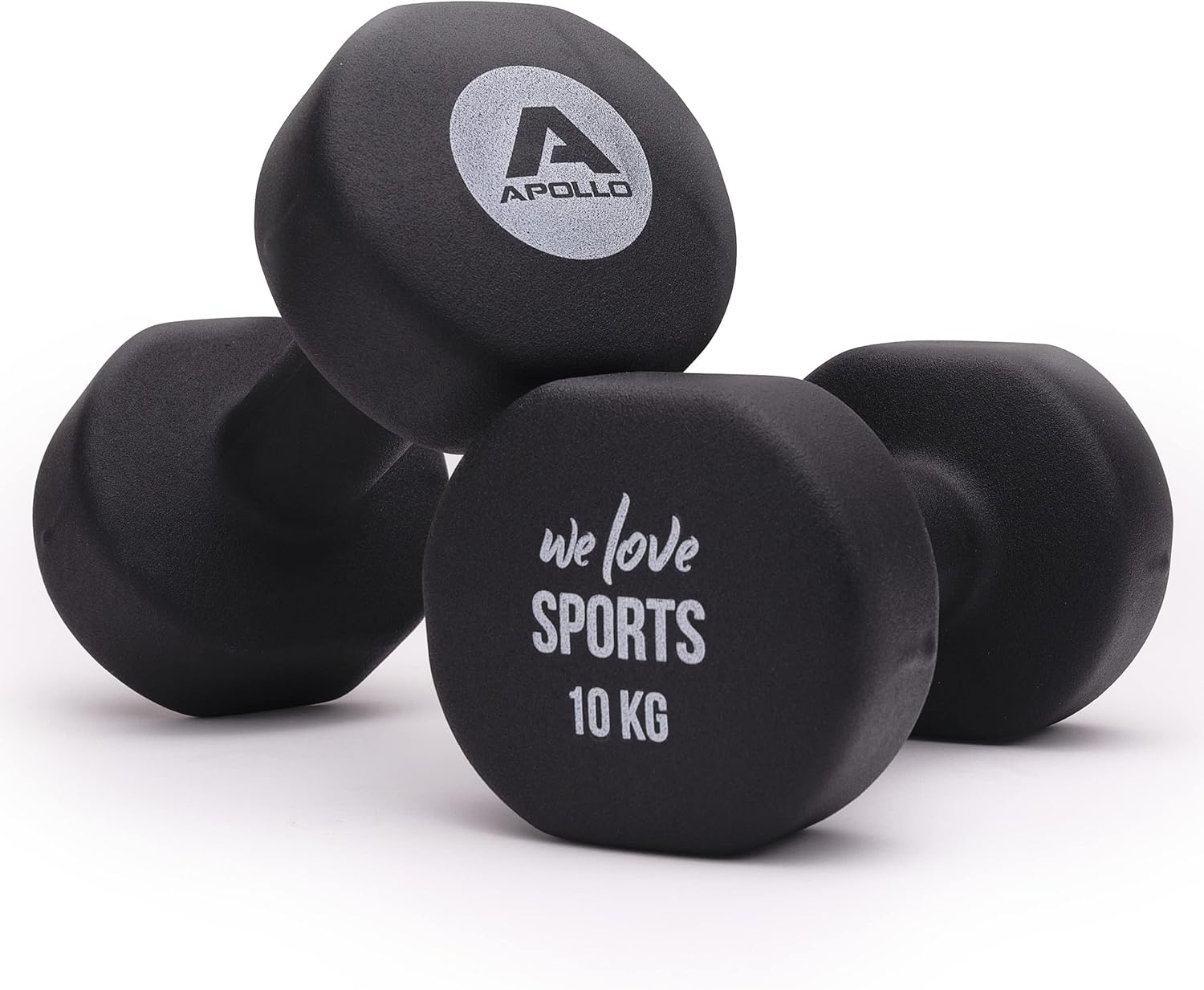 - HANTELN IM SET FÜR ZUHAUSE: Das Kurzhantelset von Apollo eignet sich optimal für das Krafttraining zuhause. Das Zweierset Gewichte bestehend aus zwei 10kg Hanteln ist ideal für ein effektives Training.