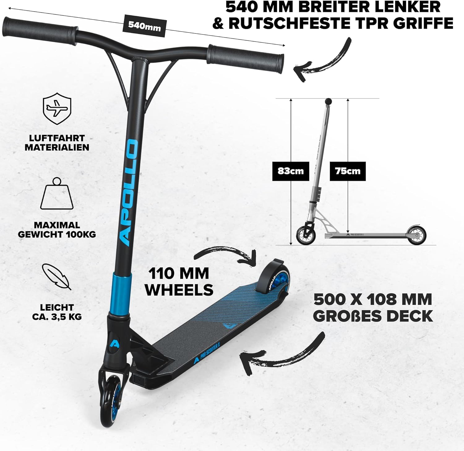 - HIGH END PRO SCOOTER: Der Apollo Profi Stunt Scooter Genesis Pro X ist ideal für Fortgeschrittene. Dieser hochwertige Funscooter mit seiner intuitiven Handhabung scheut keinen Vergleich