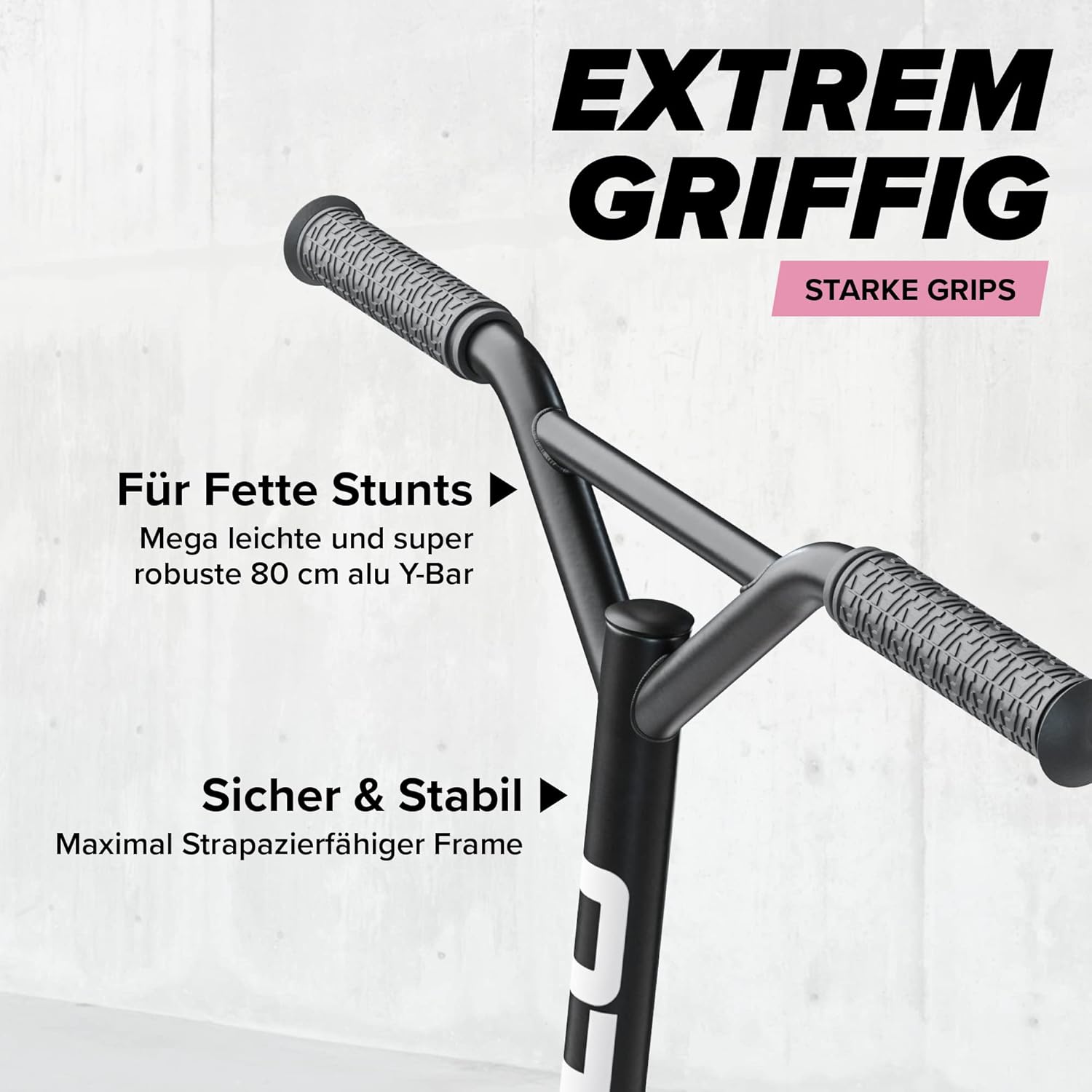 • NEW VERSION 2022 - Der kultige Freestyle Scooter erscheint mit neuer Power. Eine ordentlich verstärkte Edition für mehr Sicherheit und Stabilität. Für ambitionierte Einsteiger. Zweifellos wird dieser Stunt Scooter Kinder ab 10 Jahre glücklich machen.