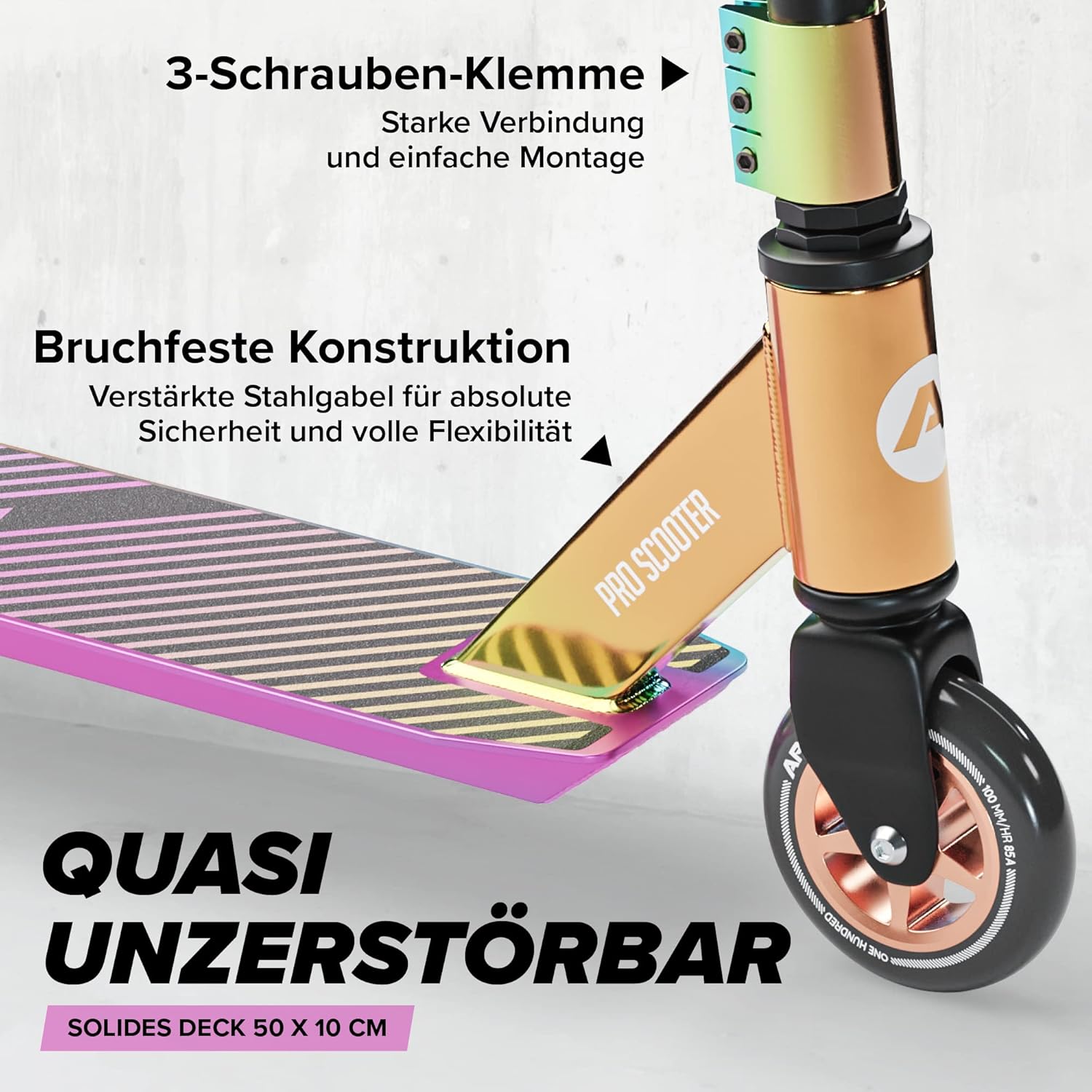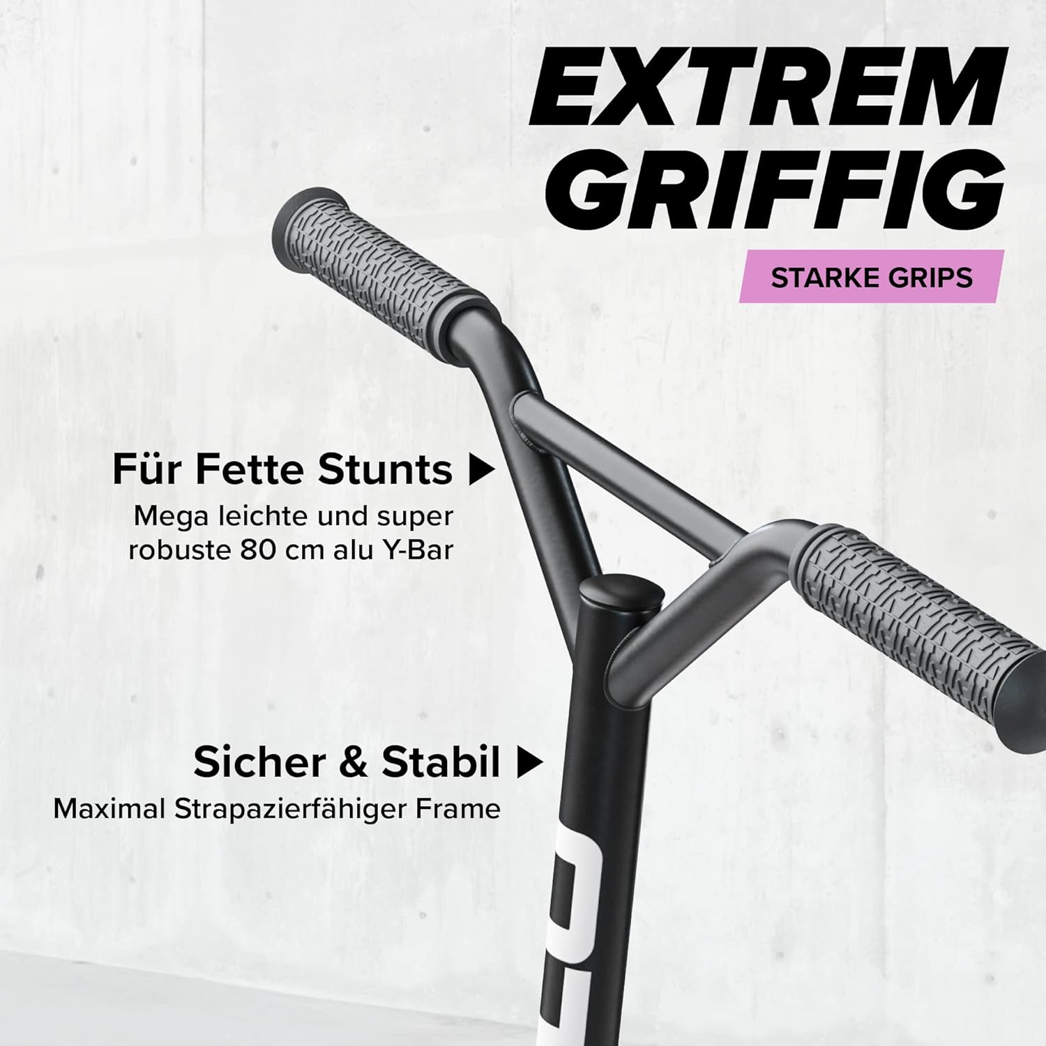 - NEW VERSION 2022 - Der kultige Freestyle Scooter erscheint mit neuer Power. Eine ordentlich verstärkte Edition für mehr Sicherheit und Stabilität. Für ambitionierte Einsteiger. Zweifellos wird dieser Stunt Scooter Kinder ab 10 Jahre glücklich machen.