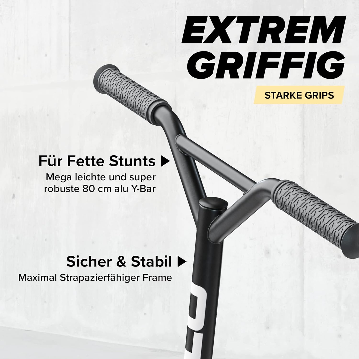 • NEW VERSION 2022 - Der kultige Freestyle Scooter erscheint mit neuer Power. Eine ordentlich verstärkte Edition für mehr Sicherheit und Stabilität. Für ambitionierte Einsteiger. Zweifellos wird dieser Stunt Scooter Kinder ab 10 Jahre glücklich machen.