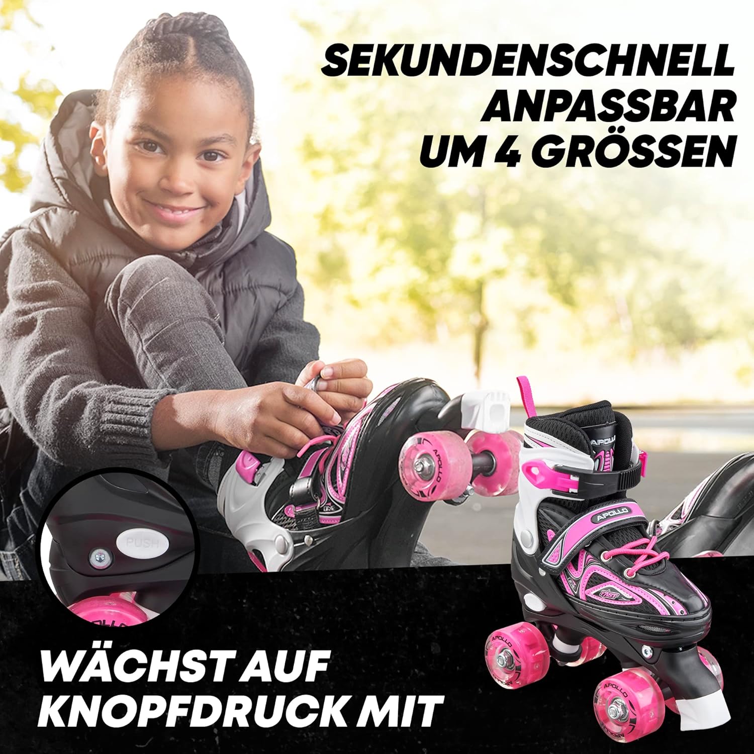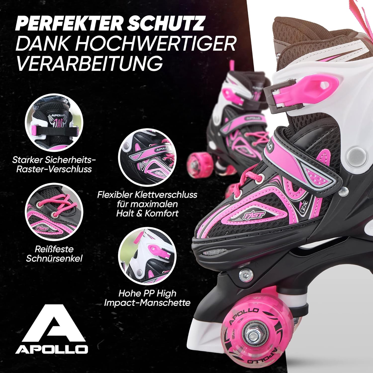 - MARKENPRODUKT: Apollo Super Quads X Pro Skates - cooles Design, LED Wheels und optimale Fahreigenschaften durch High-Rebound-Rollen (54 mm x 32 mm) und ABEC 7 Kugellager