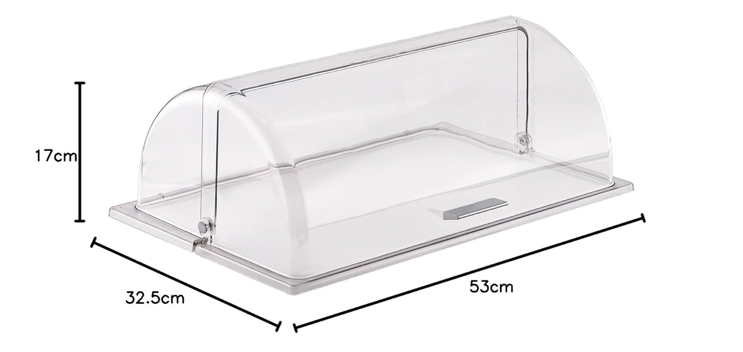 • 🌮 DATEN: Die transparente Haube mit praktischem Griff hat die Abmessungen L x B: 54 x 33 cm, Höhe: 20 cm Die GN 1/1 Haube ist spülmaschinengeeignet und ermöglicht somit eine schnelle und komfortable Reinigung