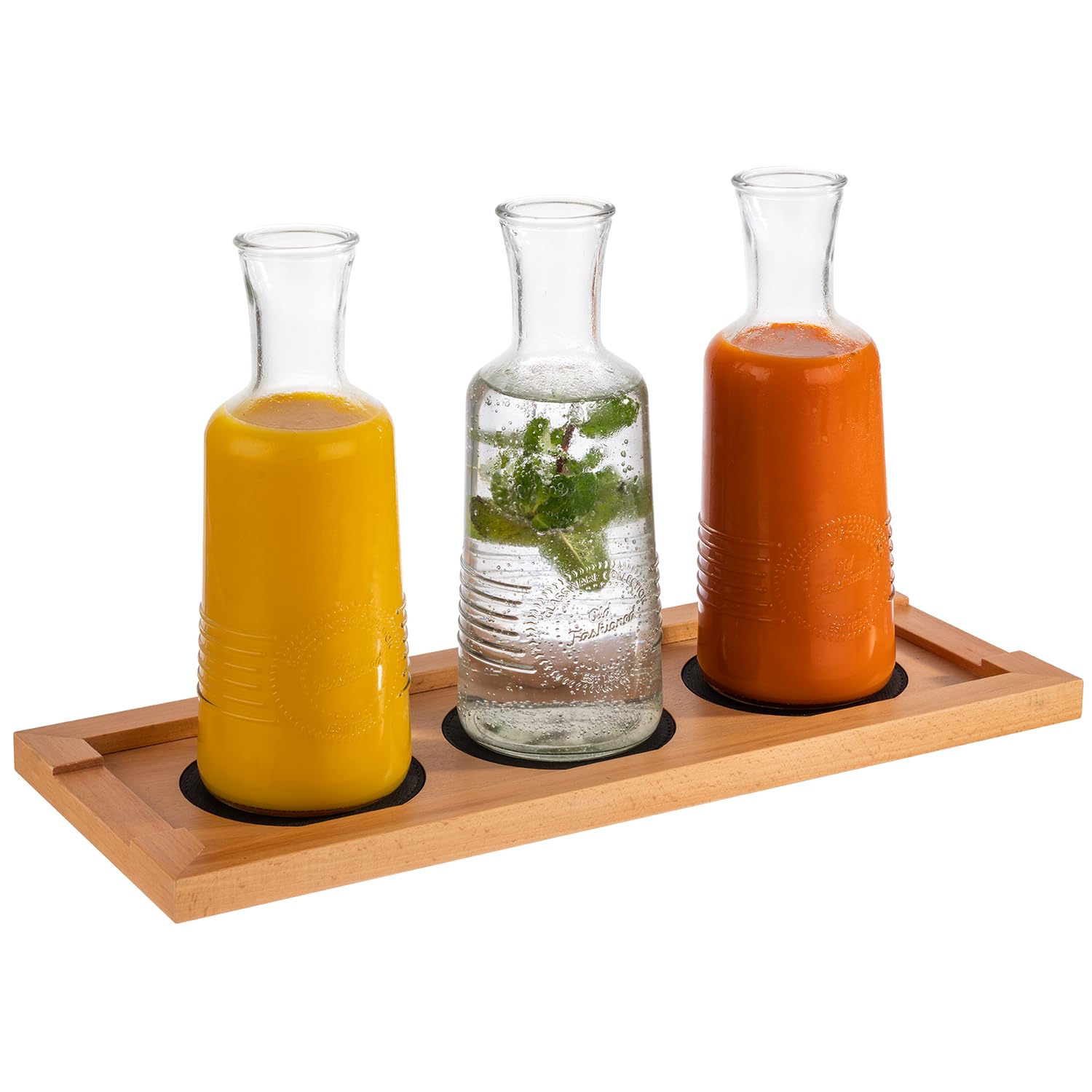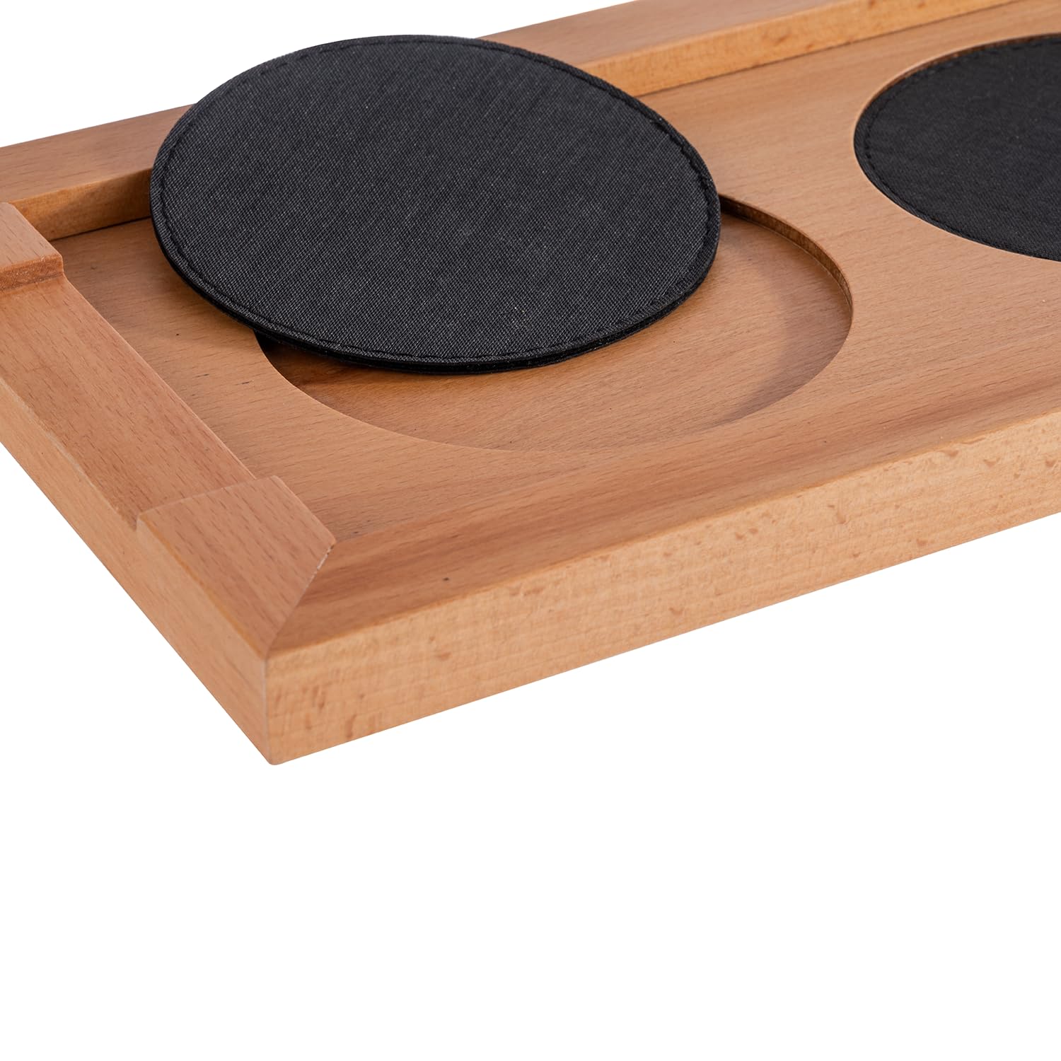 - 🍋 NUTZEN: Das Buffetbrett ist ideal für die Platzierung und Präsentation von Karaffen und Getränkeflaschen geeignet. Die drei Einsätze aus Kunstleder können sowohl in den Einkerbungen platziert werden als auch separat als Untersetzer verwendet