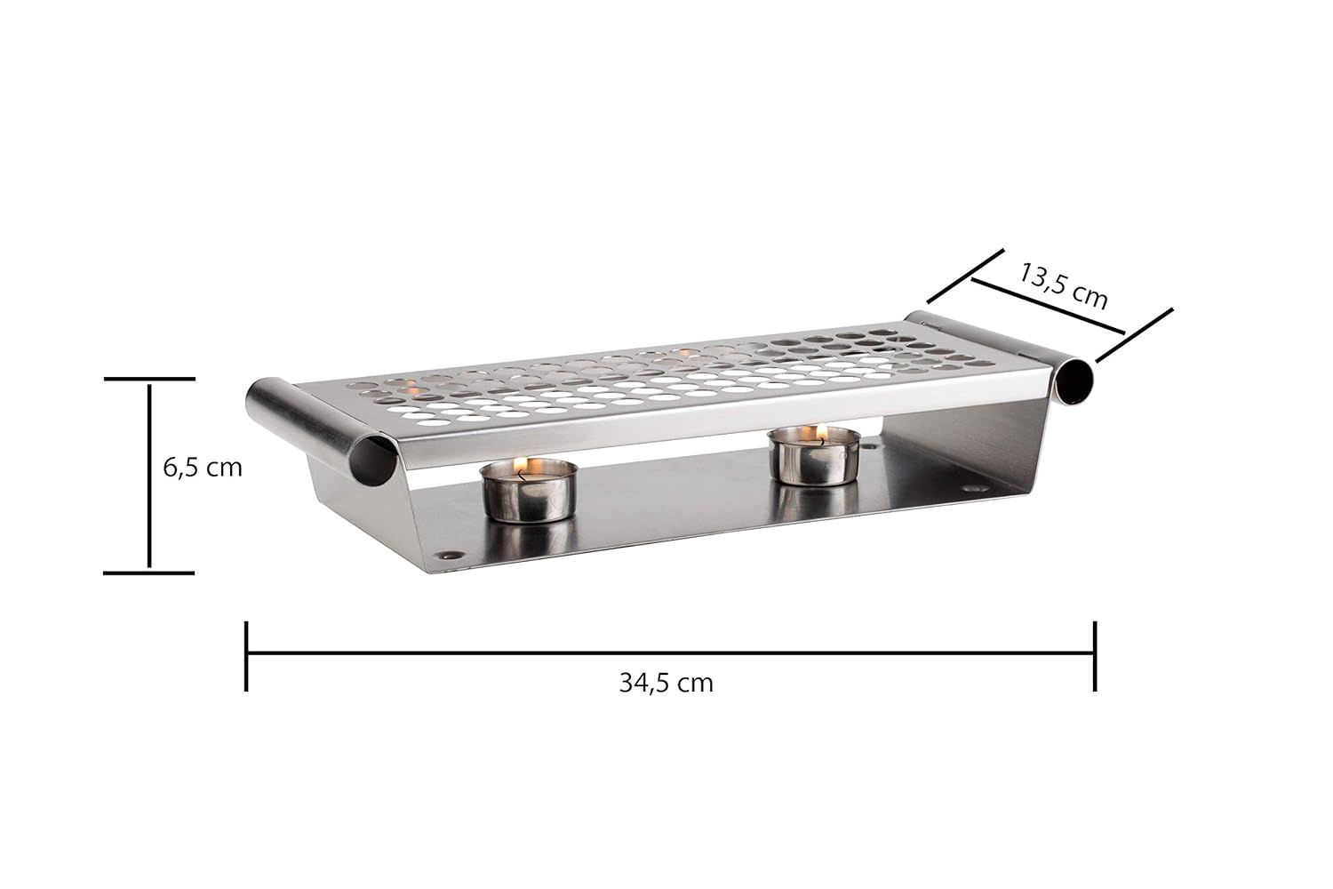 • ♨️ DATEN: Der Speisenwärmer hat eine Grösse von 13,5 x 34,5 cm und eine Höhe vom 6,5 cm. Durch die rechteckige Form lässt er sich besonders gut zwischen mehreren Gedecken platzieren.
