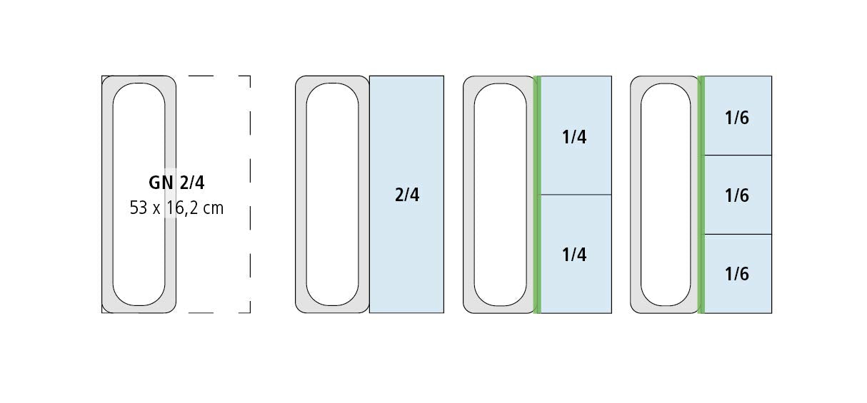 - 🍲 DATEN: Dieser GN 2/4 Deckel hat eine Grösse von 162 x 530 mm; die Höhe beträgt 30 mm.