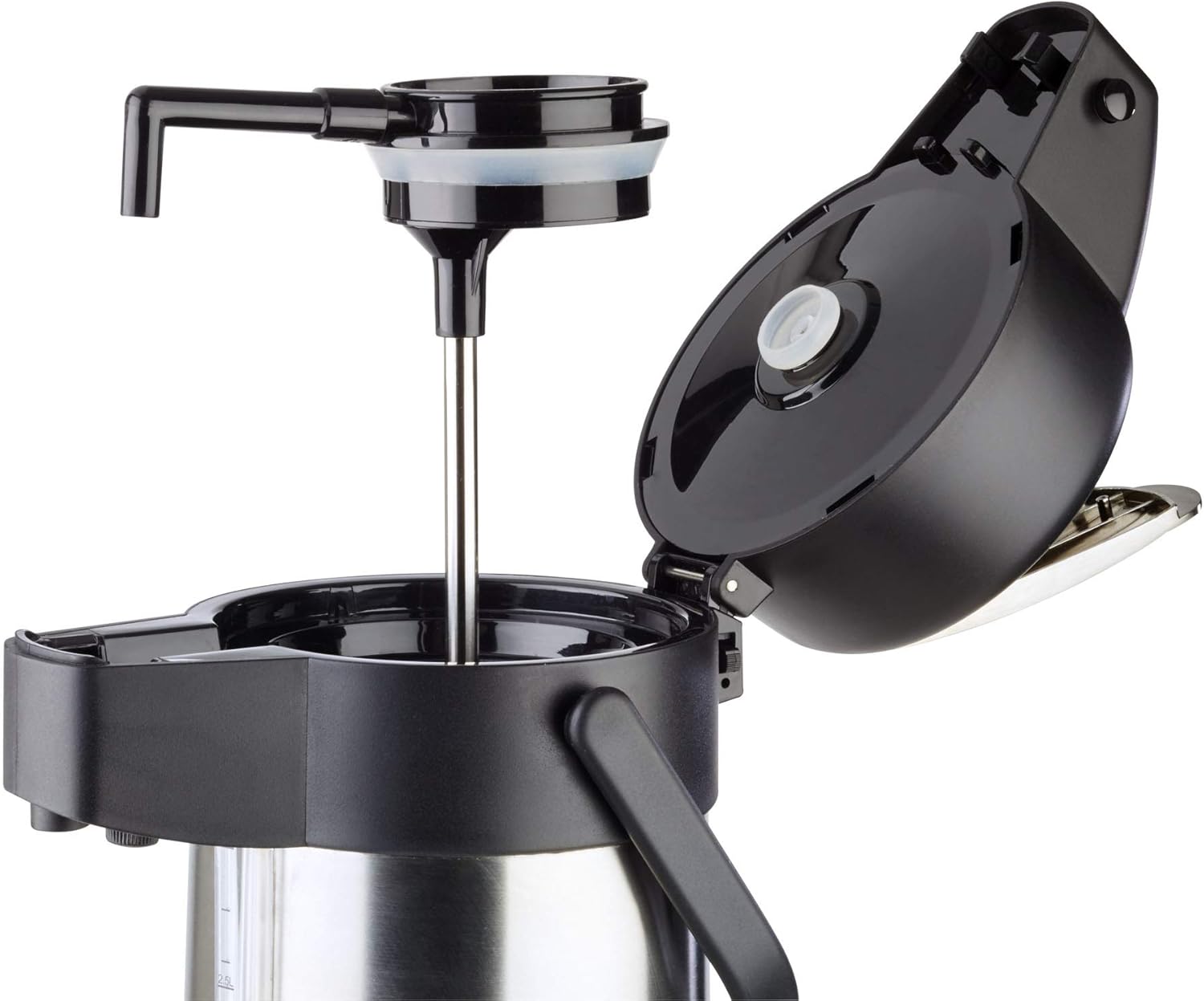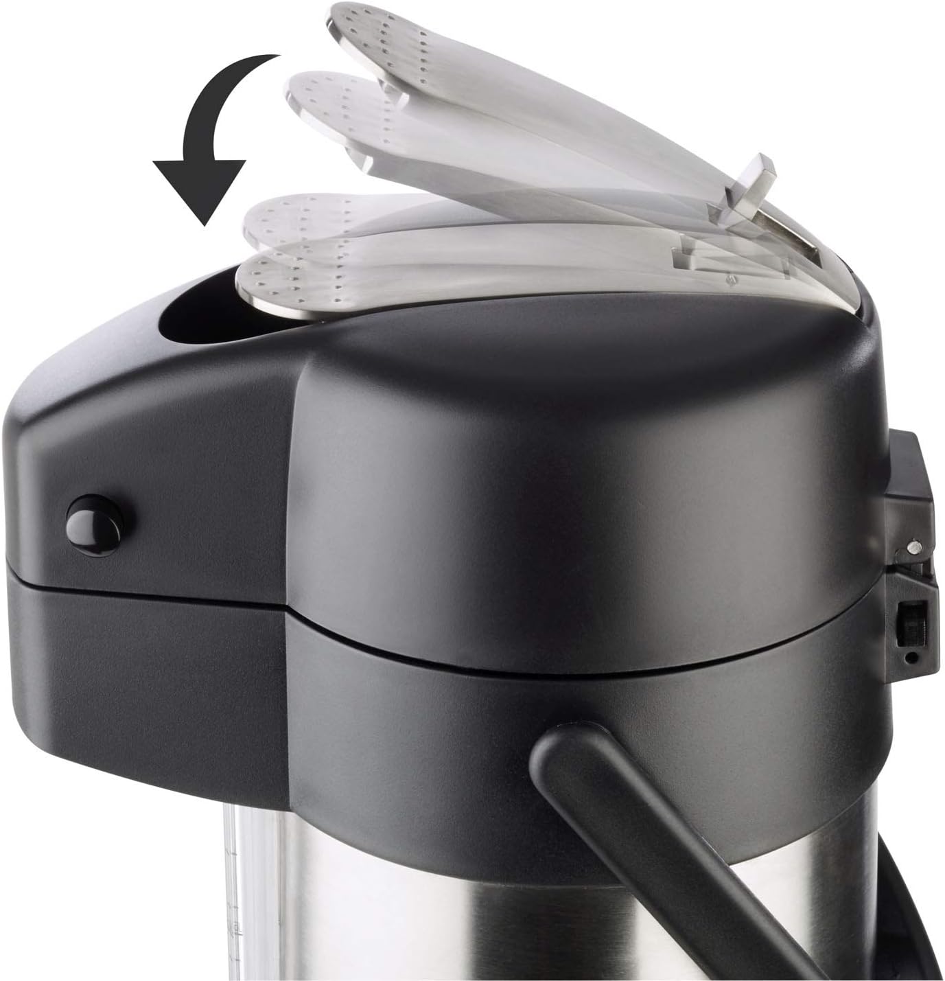 APS Pump-Isolierkanne „Premium“ – doppelwandige Kanne aus mattiertem Edelstahl mit Tragegriff und Fü