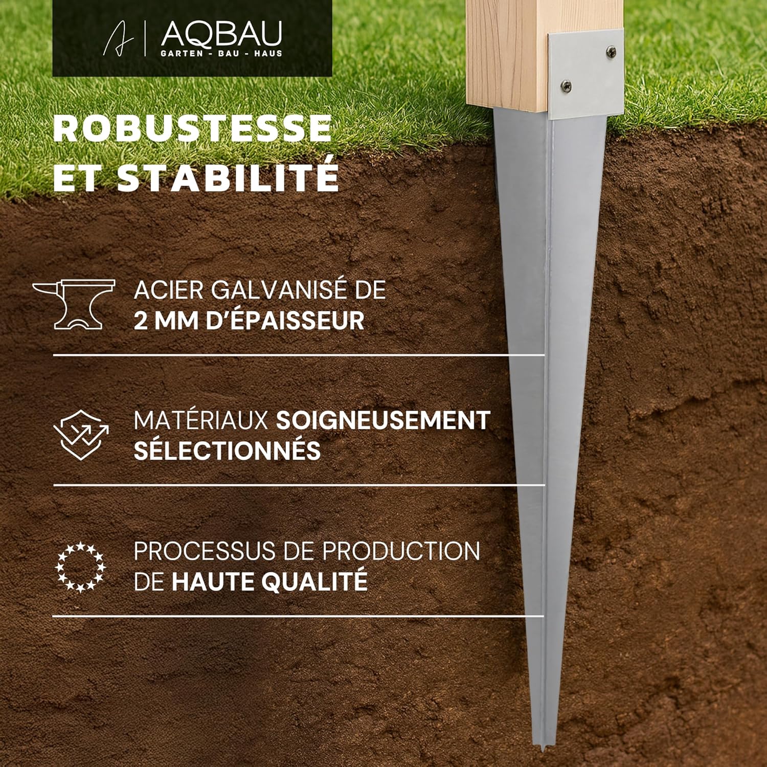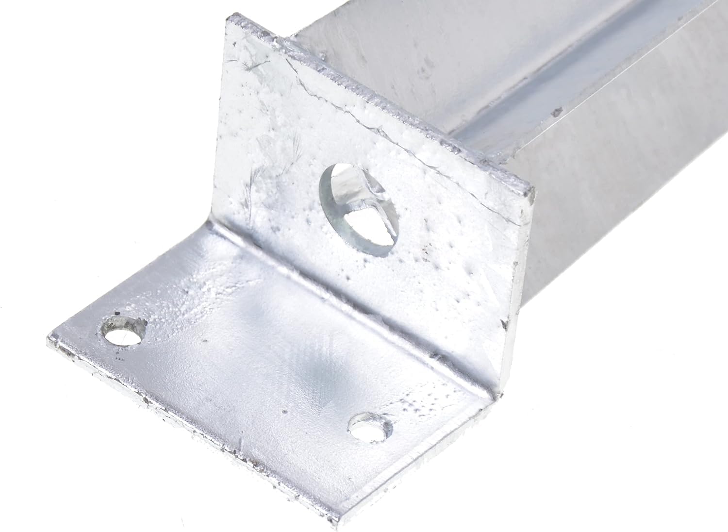 - Die Bodenanker für Holzpfosten bestehen aus verzinktem Stahlblech mit einer Dicke von 2 mm, was ausreichend Stärke und Stabilität garantiert. Die galvanische Verzinkung schützt das Element vor Rostbildung durch Kontakt mit dem Boden