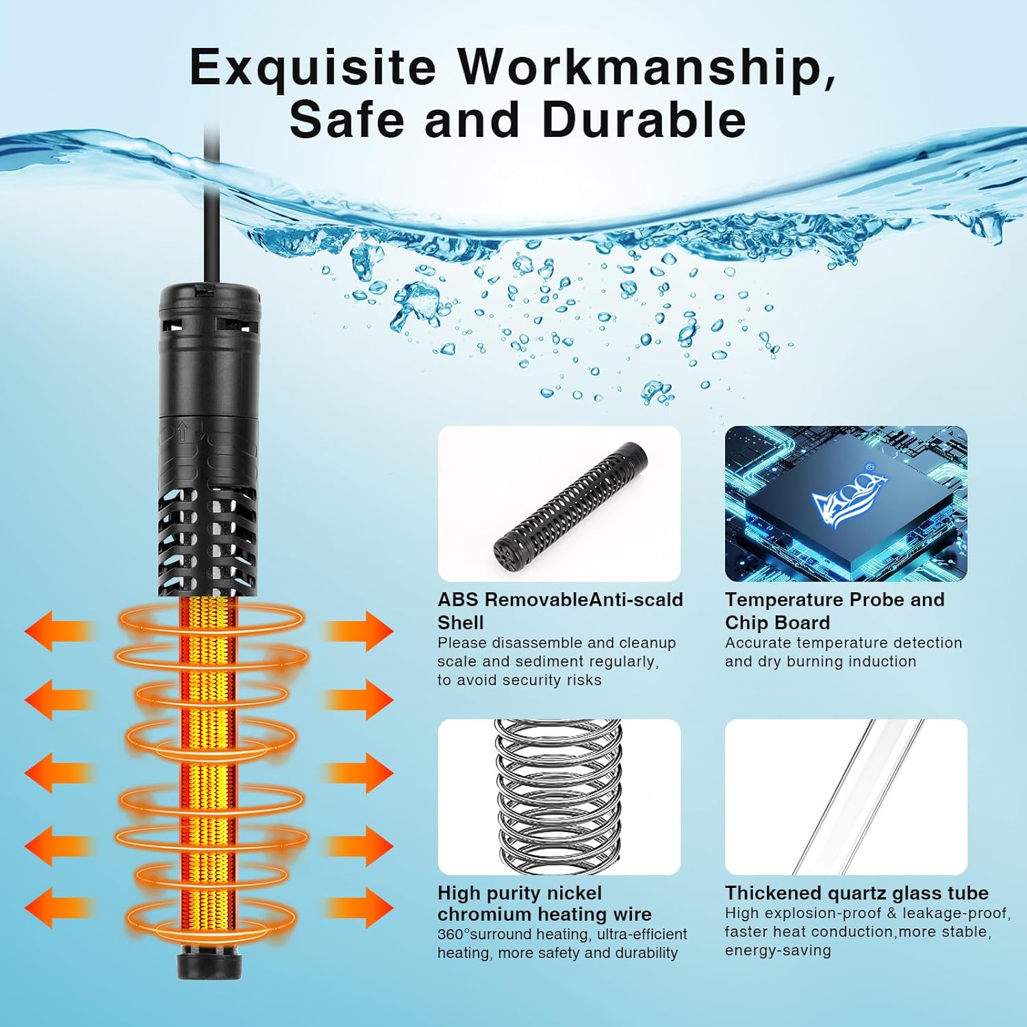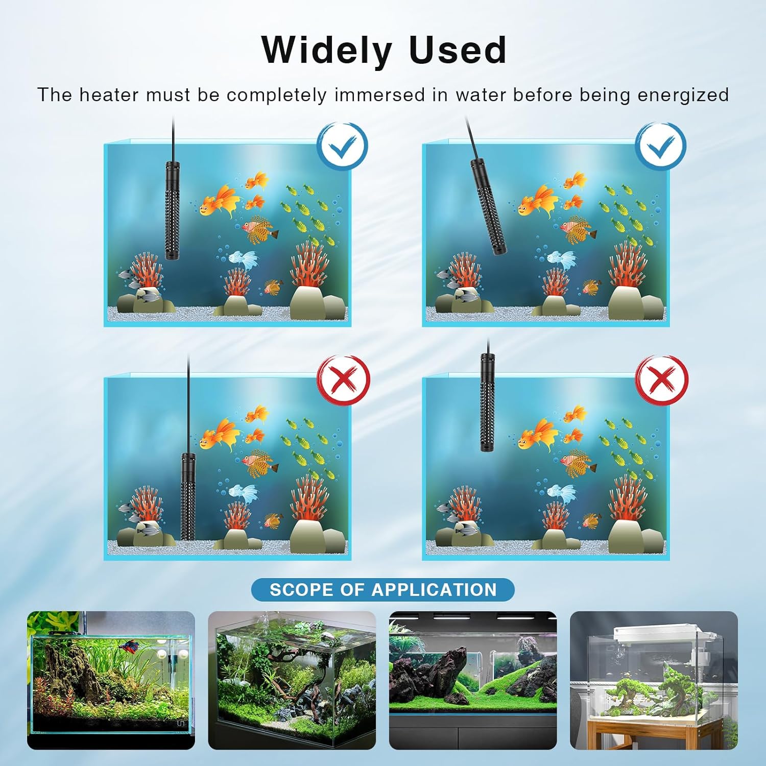 - 🐠【Scorching Protection, Safe and Reliable】Wenn der heizung die Wasseroberfläche um 6cm verlässt, wird der Strom automatisch abgeschaltet, und die Fehlercode-Anzeige in der oberen linken Ecke zeigt rot und blinkt; wenn der heizung in das Wasser