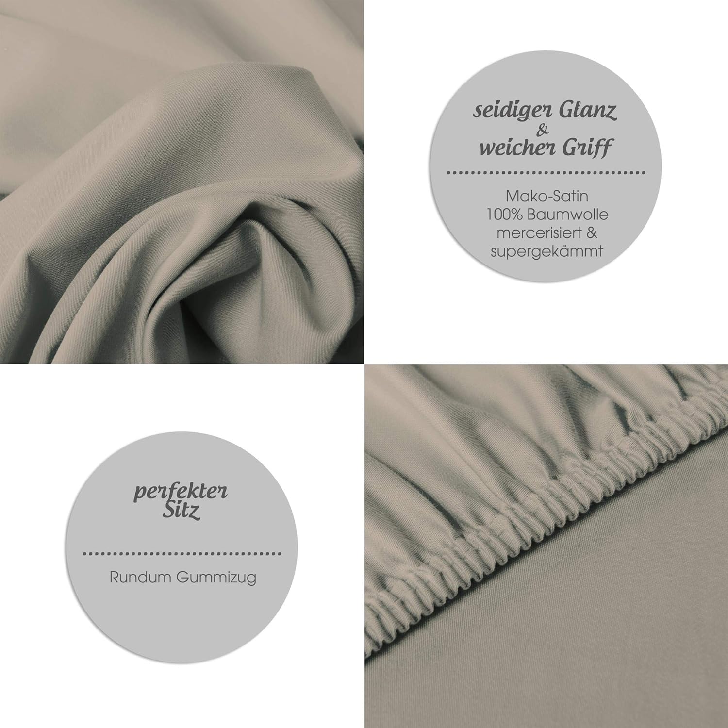 - Luxury Spannbetttücher sorgen für einen exklusiven Schlafkomfort durch den weichen, dicht gewebten Stoff. Das Mako Satin Laken bietet einen seidigen Glanz, ist atmungsaktiv und temperaturausgleichend