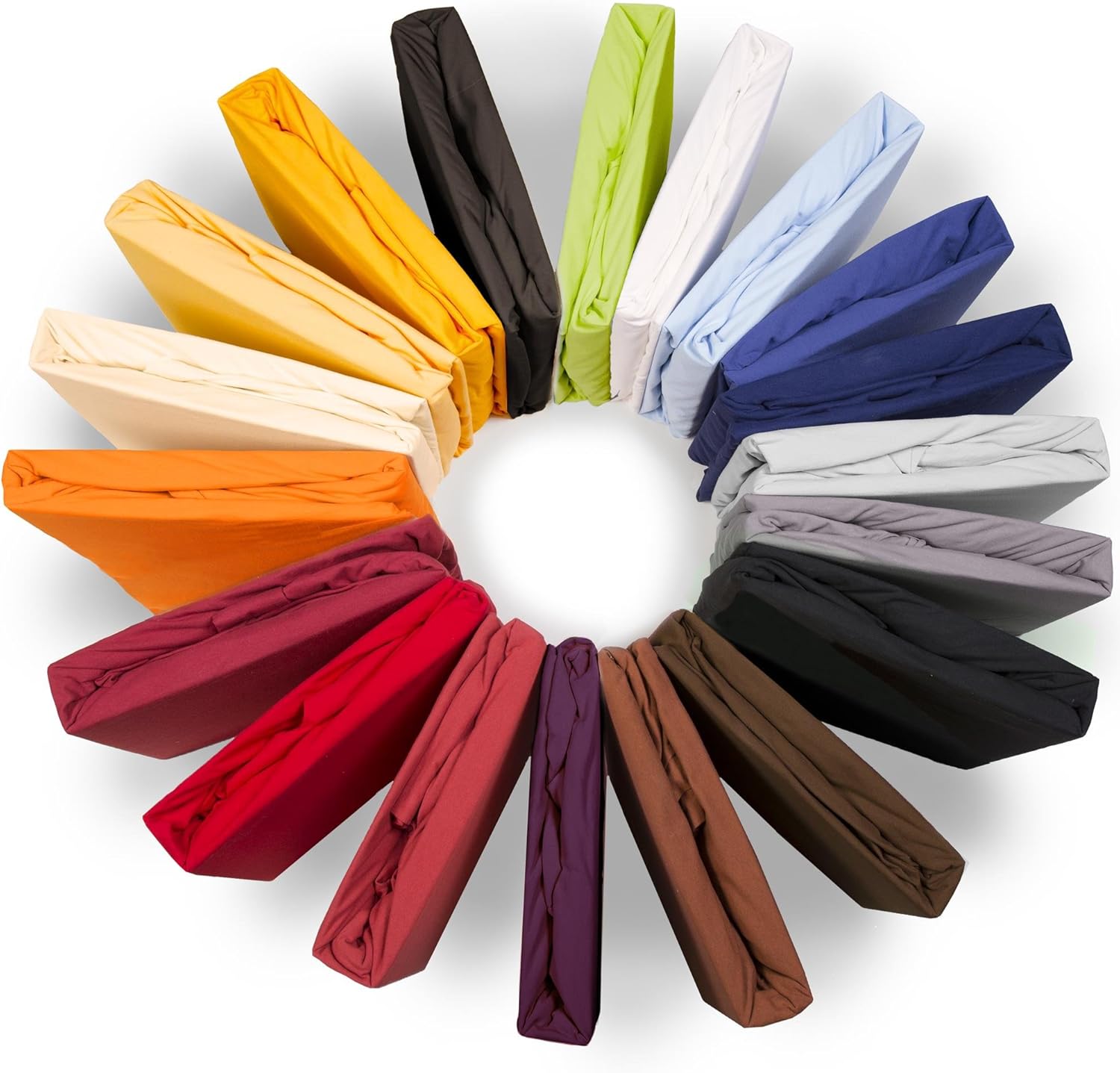 - Marken Spannleintuch aus 97% Mako-Baumwolle, 3% Elastan, Jersey mit einem Gewicht von ca. 210g/qm. Die extralangen Ecknähte sorgen für einen perfekten Sitz. Kennzeichnung Oeko-Tex Standard 100