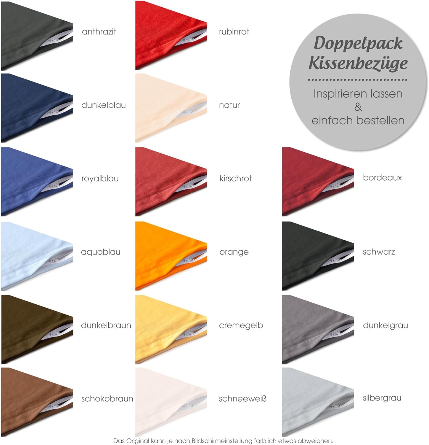 - Sie erhalten zwei aqua-textil Classic Line Bezüge in der von Ihnen gewählten Farbe und Grösse. Die ideale Ergänzung zur Bettwäsche im Schlafzimmer oder dem Lieblingskissen auf dem Sessel im Wohnzimmer