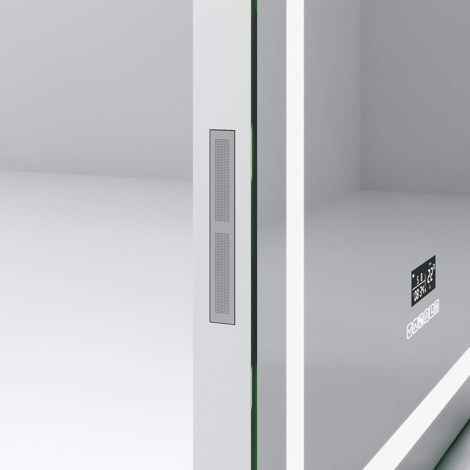 AQUABATOS Brussels-Serie Badspiegel Badezimmerspiegel mit Beleuchtung 80x60 cm Uhr Bluetooth Lautspr