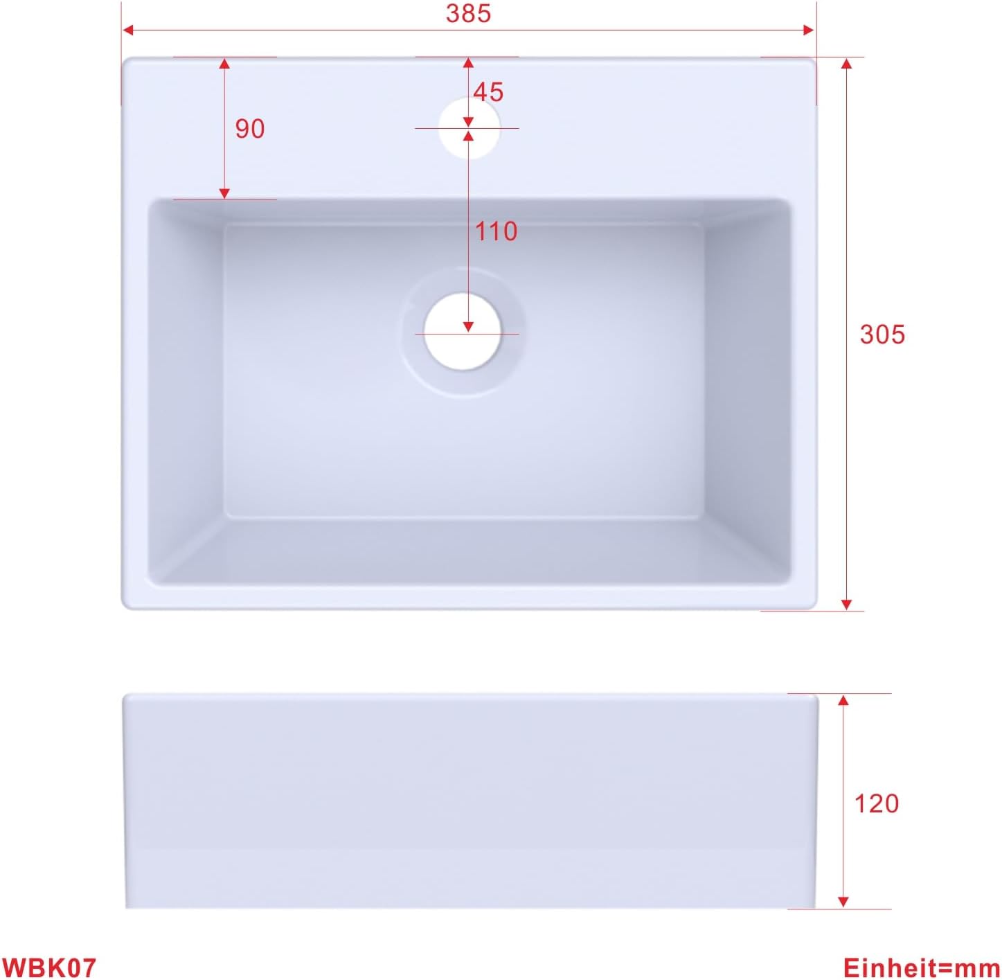 - 【Mit Hahnloch】Das vorgefertigte Hahnloch zum Anschliessen einer Einlocharmatur befindet sich in der Mitte des Handwaschbeckens. Das Handwaschbecken wurde ohne Überlauf gefertigt. Das Wasserhahn ist nicht im Lieferumfang enthalten.