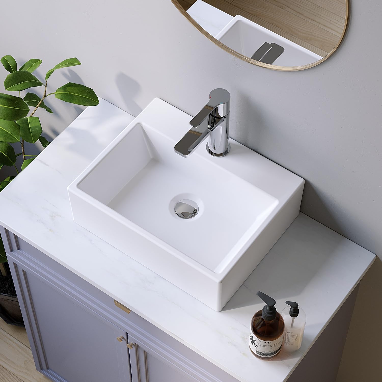 - 【Stark und Haltbar】Das Waschbecken ist aus hochwertiger Keramik gefertigt, die bei hohen Temperaturen gebrannt wurde. Dieses Material ist robust, kratzfest sowie hitzebeständig und hat sich seit Jahren in Badezimmern bewährt. Wir bemühen uns,