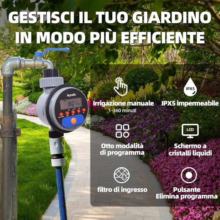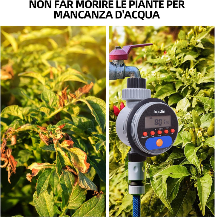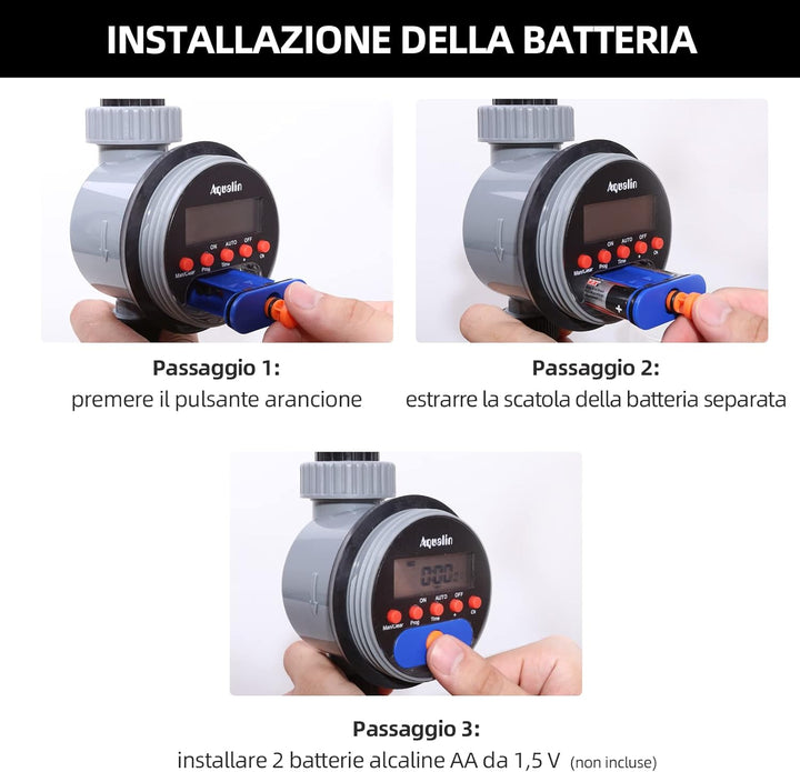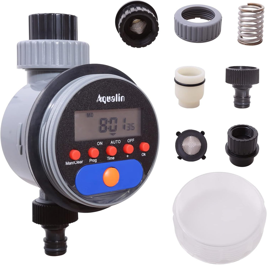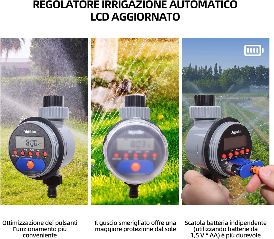 - 【Funktion】: Aqualin Bewässerungscomputer hat zwei Funktionen: automatisch/manuell. Akzeptiert 3/4 Fuss EU- Gartenschlauch. Der Controller kann 8 Programmgruppen und 15 Arten der Auswahl des Arbeitsdatums einstellen.