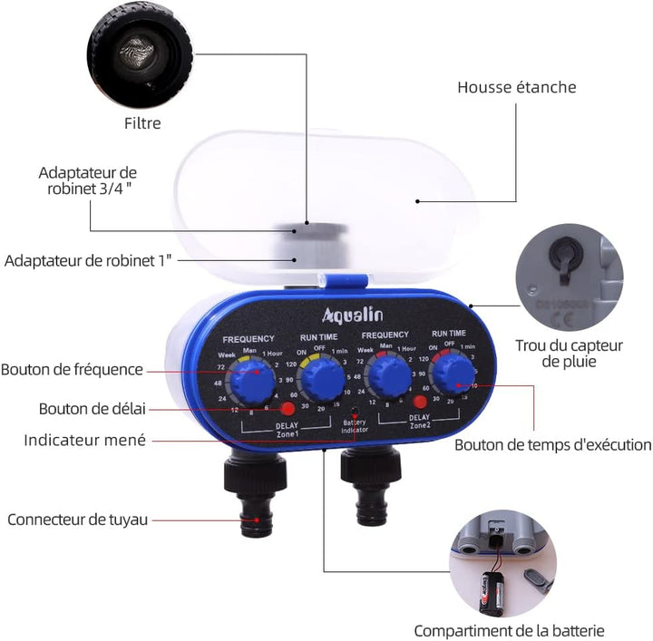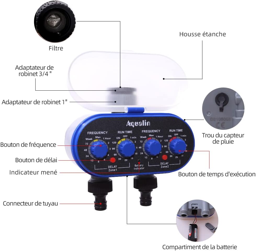 - Die Rasensprenger Zeitschaltuhr ist wasserdicht mit der Schutzdeckel, deshalb kann dieses Bewässerungssystem draussen benutzt werden.