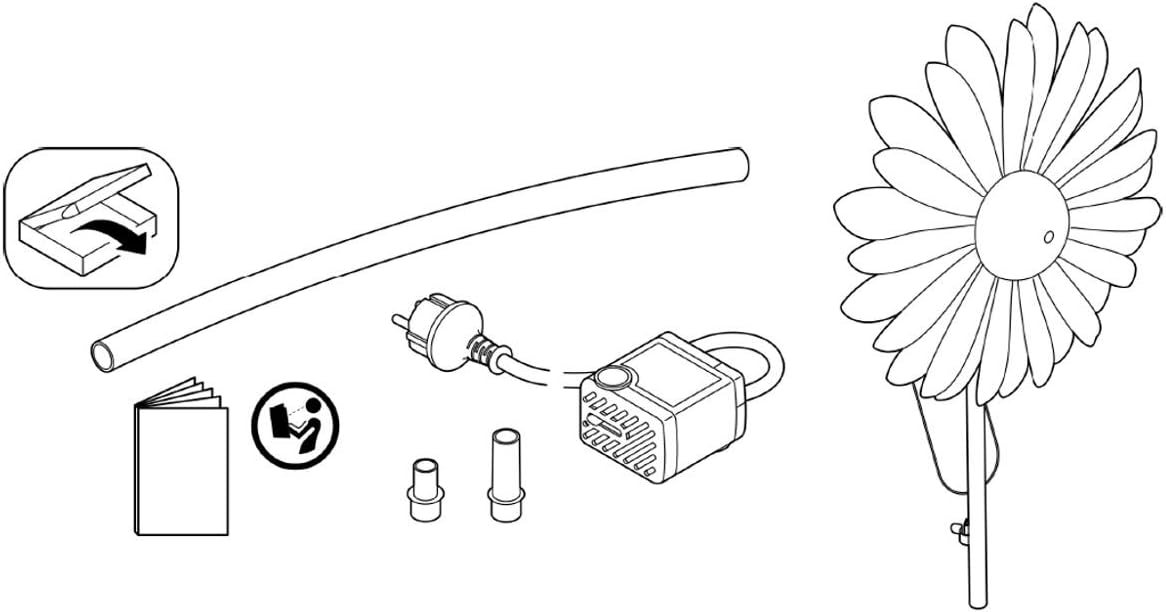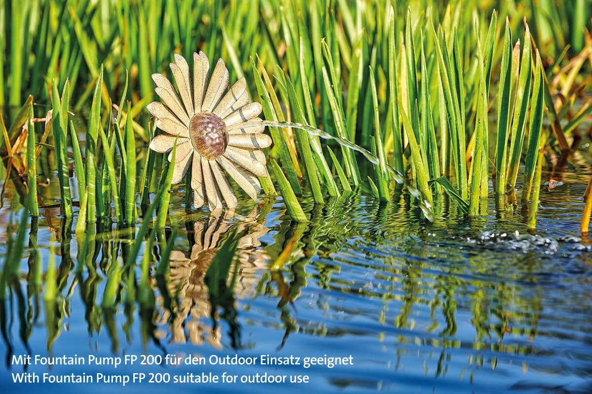 - Bezaubernd: das All-in-One Wasserspiel aus Pumpe, Schlauch und dekorativem Gänseblümchen aus Metall eignet sich ideal für kleine Wasserbecken