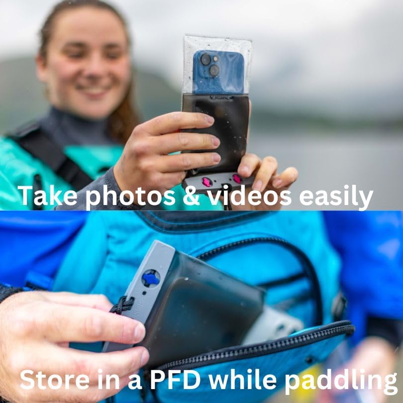 - Die Unterwasserhülle hat ein leichtes Design, das das Tragen beim Schwimmen erleichtert. Die patentierte, ultra-sichere Aquaclip-Dichtung hält Ihr Telefon sicher, mit einem verstellbaren Umhängeband für Komfort. Das Umhängeband kann über die Brust