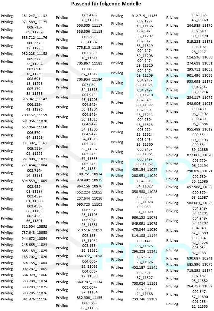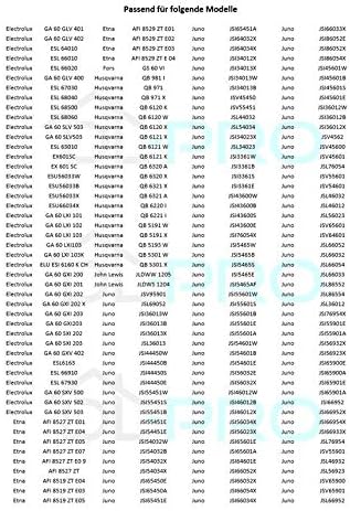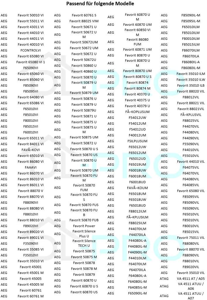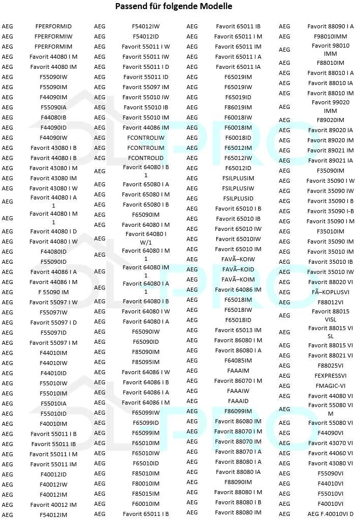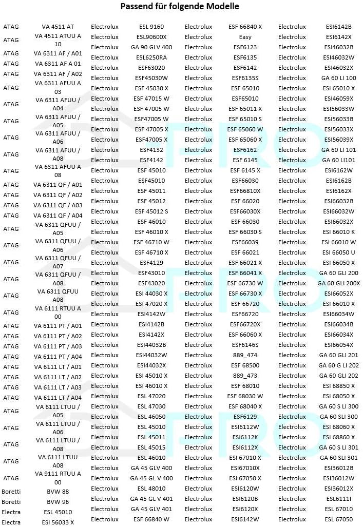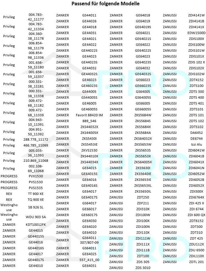 - Passend für folgende Marken: AEG ARTHUR MARTIN ATAG Boretti Electra Electrolux Etna Fors Husqvarna John Lewis Juno Küppersbusch Lloyds M-System Pelgrim Primotecq Privileg PROGRESS REX Westinghouse Zanker Zanussi