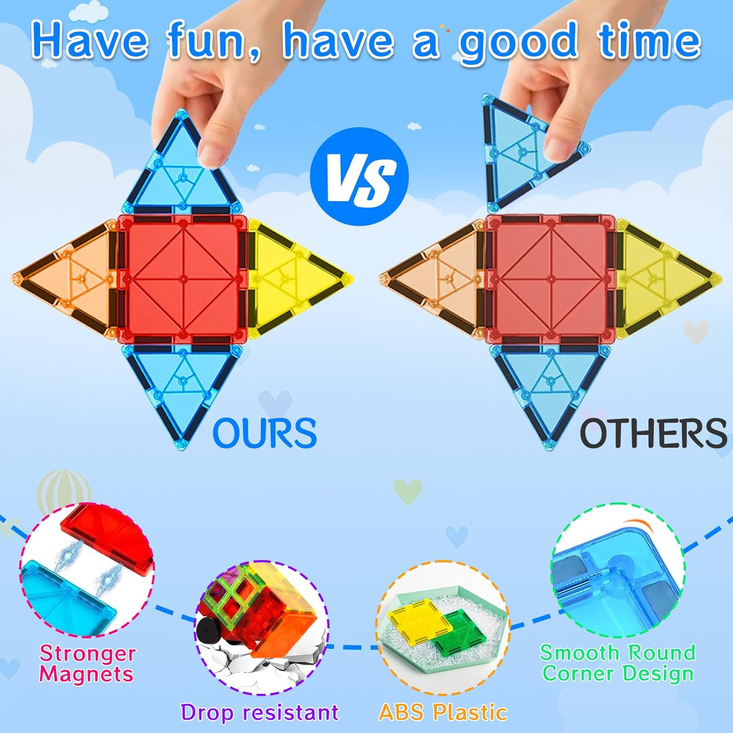 - đăGute qualitĂ€tăïŒDie bunten magnetischen Bausteine ââbestehen aus hochwertigem ABS-Material, sind langlebig, sicher und umweltfreundlich, ungiftig und harmlos. Hohe Transparenz, gute FarbqualitĂ€t, verblasst nicht. Mit exquisiter