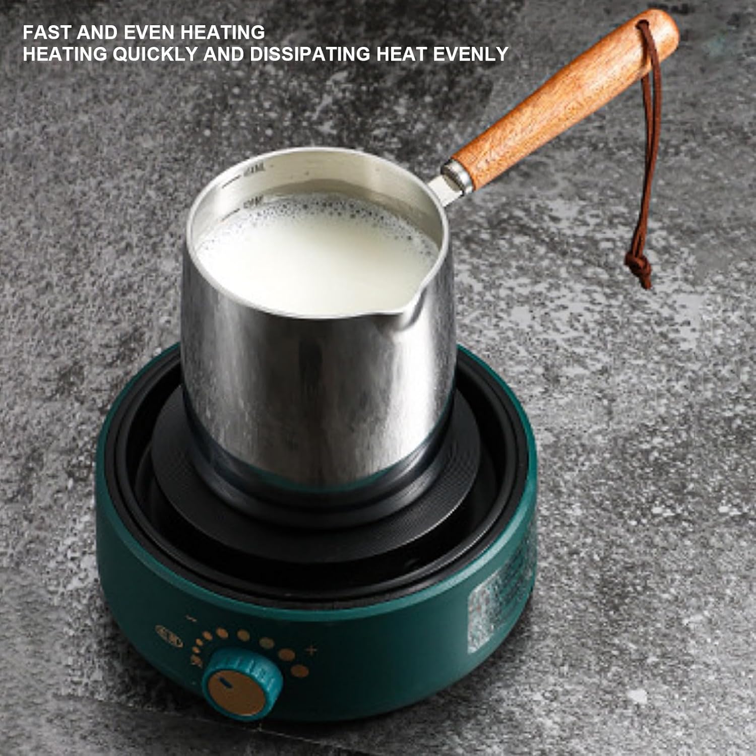 - Vielseitige Verwendung: Dieser Milchwärmertopf dient verschiedenen Zwecken, wie zum Beispiel dem Erhitzen von Milch, der Herstellung von Sirup, dem Schmelzen von Butter, Käse, Karamell und Schokolade. Es eignet sich auch zum Aufwärmen kleiner