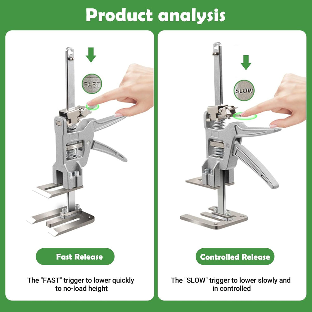 - HÖHENVERSTELLBARER MÖBELHEBER MIT ZWEI GESCHWINDIGKEITEN - Konfigurieren Sie die Taste mit doppelter Geschwindigkeit. Drücken Sie wiederholt die Taste „LANGSAM“, um den Abstieg gleichmässig zu optimieren, die ideale Höhe einzustellen, die Gefahr