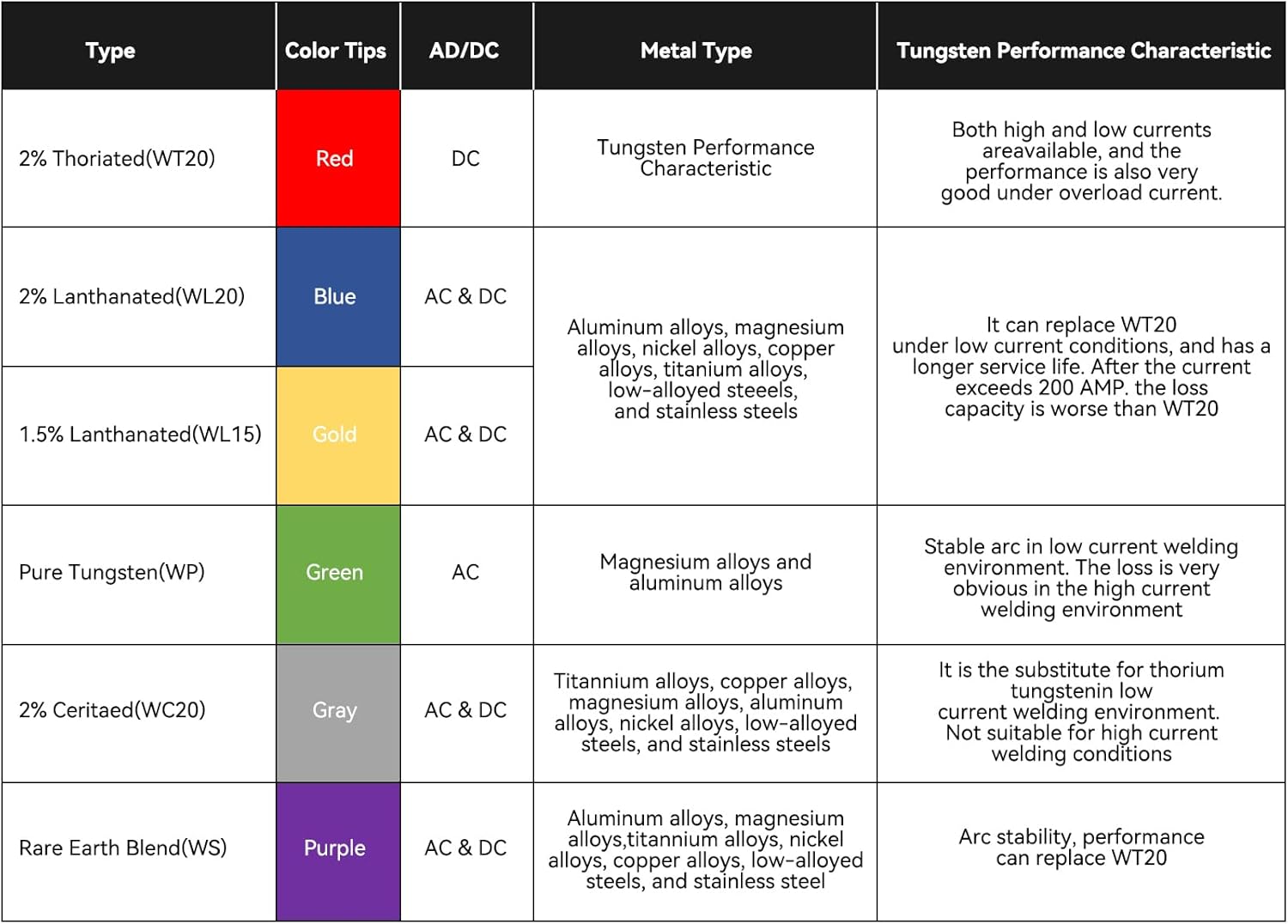 - VORTEIL: Die 1,5% lanthanierte Wolfram-Schweisselektrode bietet gute elektrische Leitfähigkeit. Sie sind beliebt, da das Anzünden eines Lichtbogens und der erforderliche Strom niedriger sind.