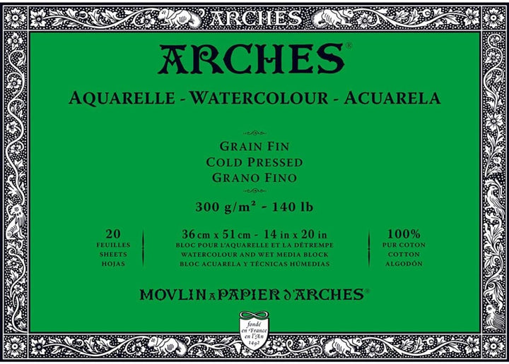 Variante: Feinkorn - Naturweiss, 300g/m² Block 20 Blatt - 36 x 51cm