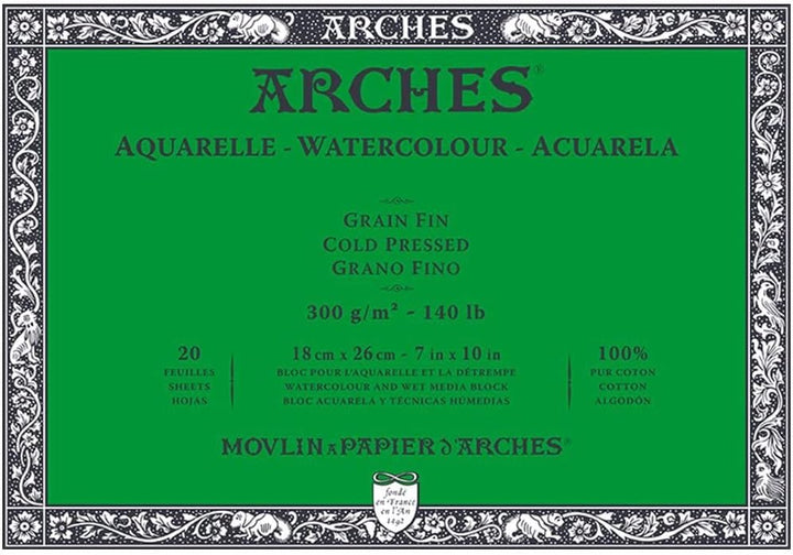 - Kaltgepresst, feine Körnung, 300 g/m², 18 cm x 26 cm, 20 Blatt