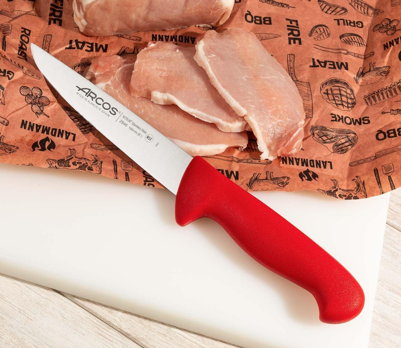 • Das Metzgermesser der Serie Arcos 2900 ist ein Küchenwerkzeug, das das Schneiden von Fleisch erleichtert. Ideal zum Entbeinen von Fleisch und in Kombination mit dem Schinkenmesser die perfekte Wahl zum Schneiden aller Arten von Schinken. Speziell für