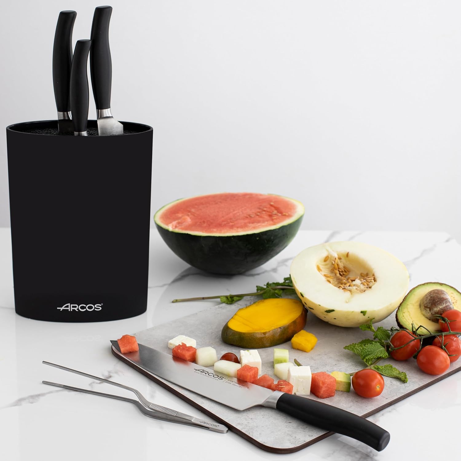 • PRAKTISCH UND FUNKTIONAL: Hoch und oval, speziell entworfen, um eine Vielzahl von Arcos-Messern mit einer Klingenlänge von bis zu 20 cm optimal aufzubewahren; Abmessungen: 220 x 160 x 65 mm