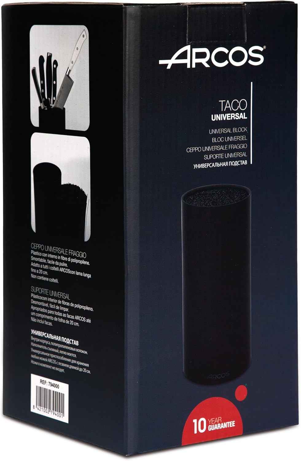 - QUALITÄT UND SICHERHEIT: Der Innenbereich des schwarzen runden Blockes von Arcos besteht aus einer Einlage aus thermoplastischem Gummi und wird zur sicheren Aufbewahrung von Messern ohne Risiko der Abstumpfung der Klingen verwendet
