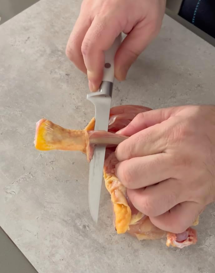 - HandGriff: Neuer weisser Griff, in einem Stück geschmiedet, mit einer eleganten Ferrule im französischen Stil