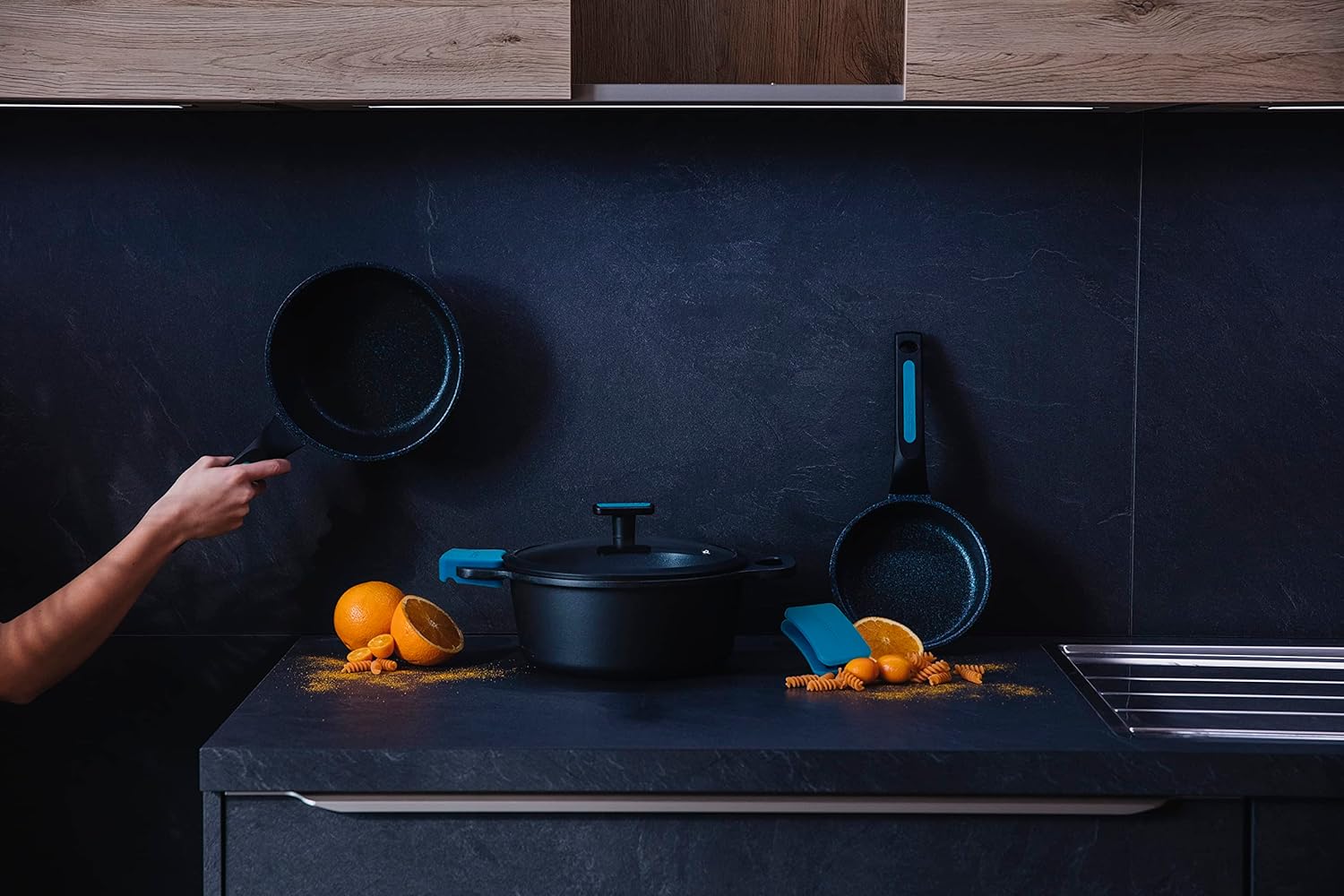 • PREMIUM ANTIHAFTBESCHICHTUNG: Sie verfügen über eine Antihaftbeschichtung mit Moonscape-Effekt. Es wird Ihr bester Verbündeter sein, wenn es darum geht, Gerichte zuzubereiten, die etwas kleben könnten. Ausserdem ist es kratz- und abriebfest, die