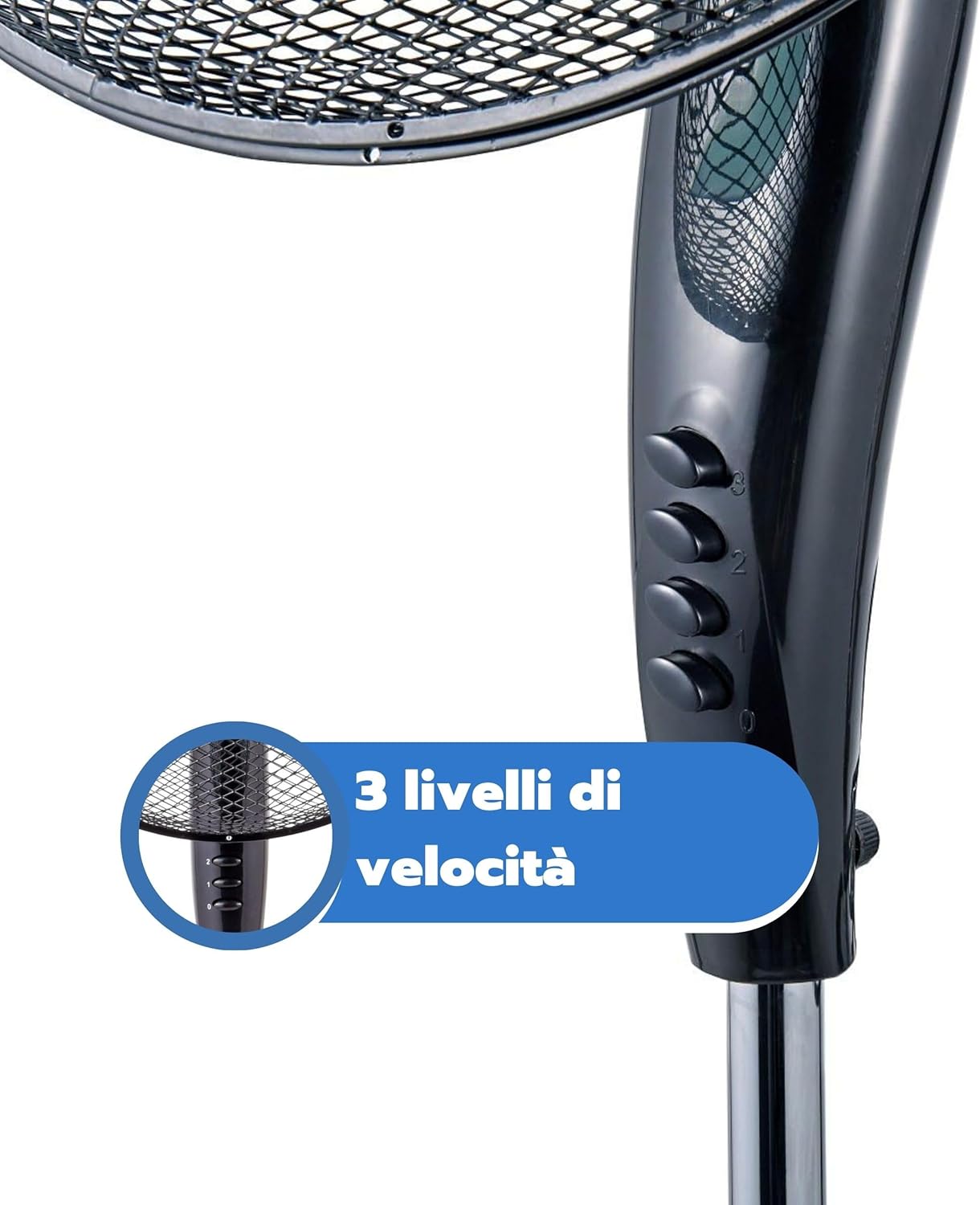 - GEBRAUCHSWEISE - Der Ventilator mit Ständer EASY steht fest und sicher auf dem Boden dank des breiten, runden Sockels. Danach schalten Sie die 3 Flügel des Standventilators mit den Schaltern am Hals des Ventilators ein