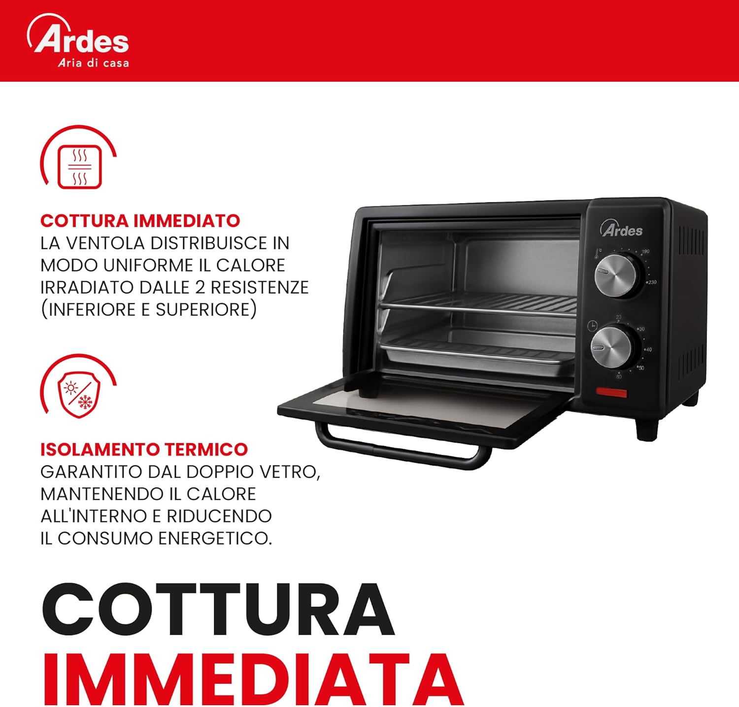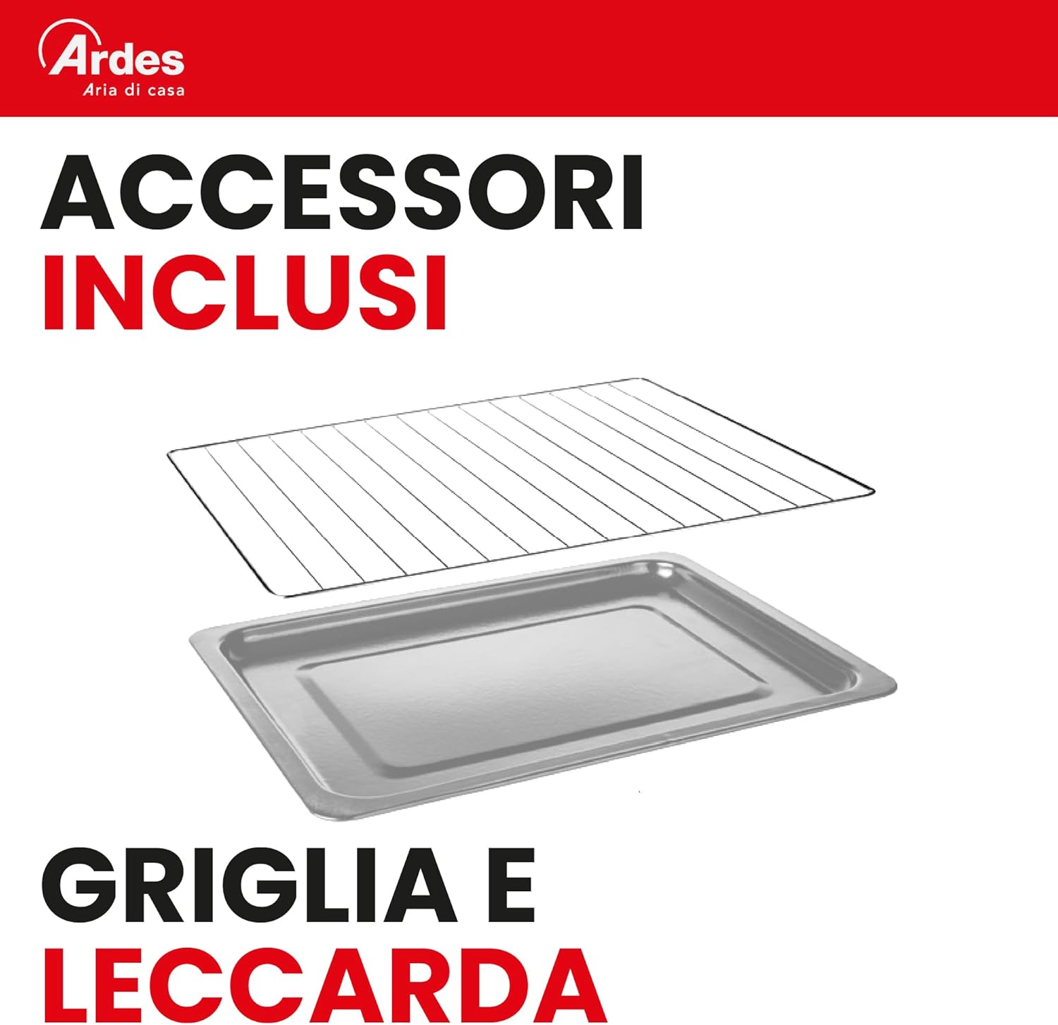 - ZUBEHÖR - Der elektrische Backofen von 10 Litern Ardes ist mit zwei Zubehörteilen ausgestattet: eine Auffangschale, um Krümel oder Flüssigkeiten aufzufangen und nicht zu verteilen, und ein Grill, um Ihre Lieblingsgerichte am besten zuzubereiten