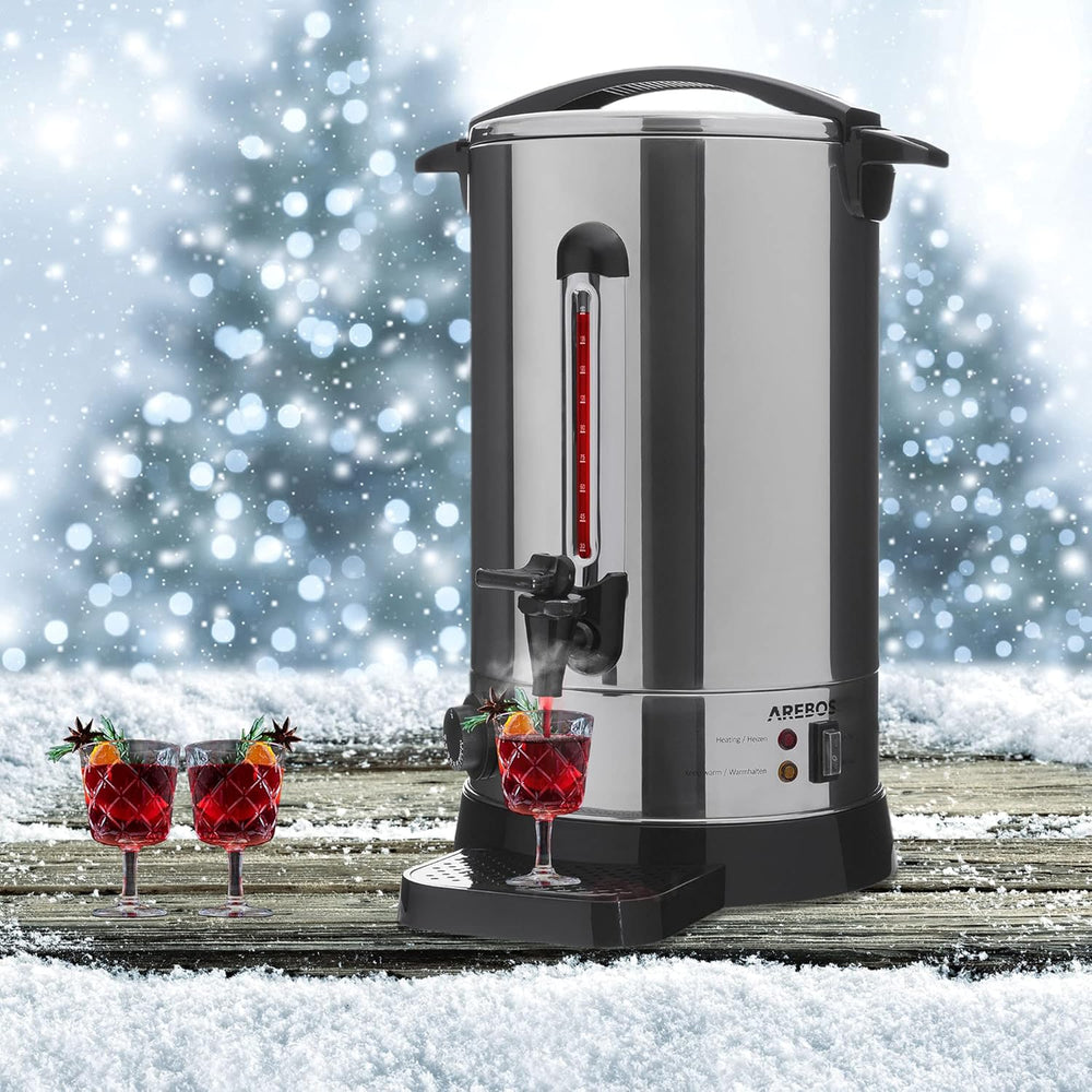 - [Vielseitig einsetzbar] Mit einem grosszügigen Volumen von ca. 90 Tassen können im Getränkekocher unterschiedliche Heissgetränke für vielseitige Einsatzbereiche zubereitet werden: ob für Glühwein, Punsch, Tee, Kaffee oder das bequeme Abkochen