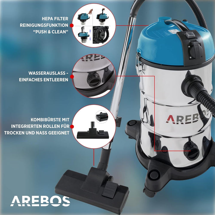 - [LEISTUNGSSTARK] Mit ≥ 18 kPa Saugkraft, 1300 W stark & 30 L Edelstahl Behälter eignet sich der Premium Mehrzwecksauger perfekt für Outdoor, Werkstatt, Haus, Büro, Garten, Aussenbereich & Auto | Ideal für die Arbeit mit Elektrowerkzeugen,