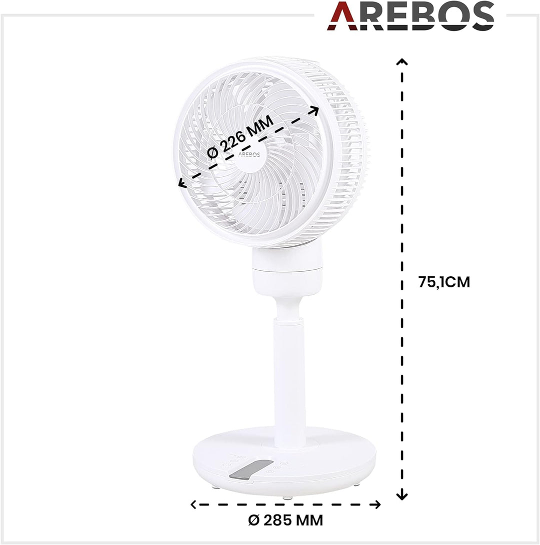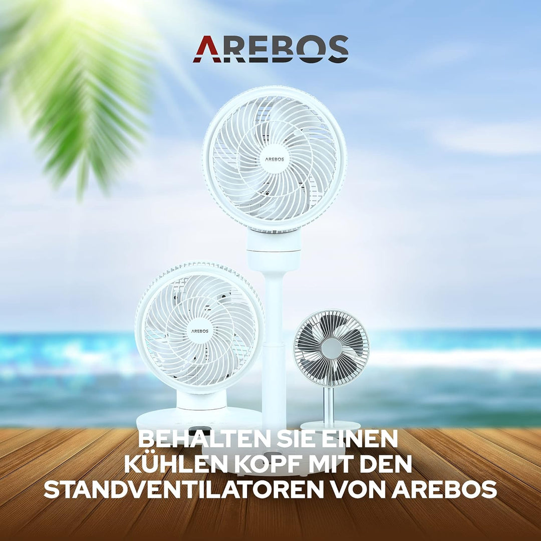 - [Kraftvoll & Leise] Ein leiser Begleiter im Alltag, der AREBOS 55 W Luftzirkulator mit 5 Blätter (die meisten anderen, vergleichbaren Produkte haben nur 3 Blätter) hat mehr Kraft, dennoch bleiben der Wind und das Geräusch angenehm.