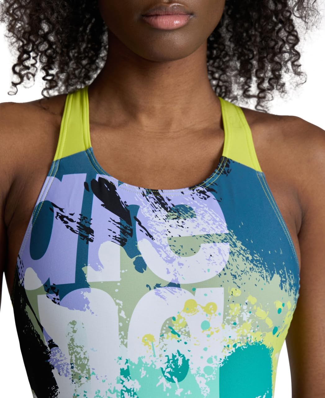 ARENA Damen Women's Waves Breaking Swimsuit V Back One Piece Swimsuit (1er Pack) 34 Black Multi-blac