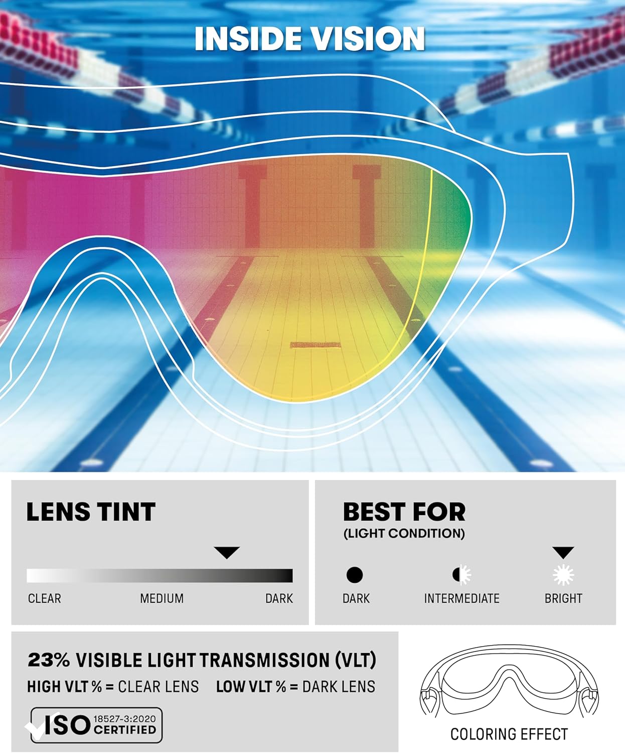 • HELLE GLÄSER: Schwimmbrillen für Erwachsene mit hellen Gläsern, ideal für Innen-Schwimmbecken und Umgebungen mit wenig Licht