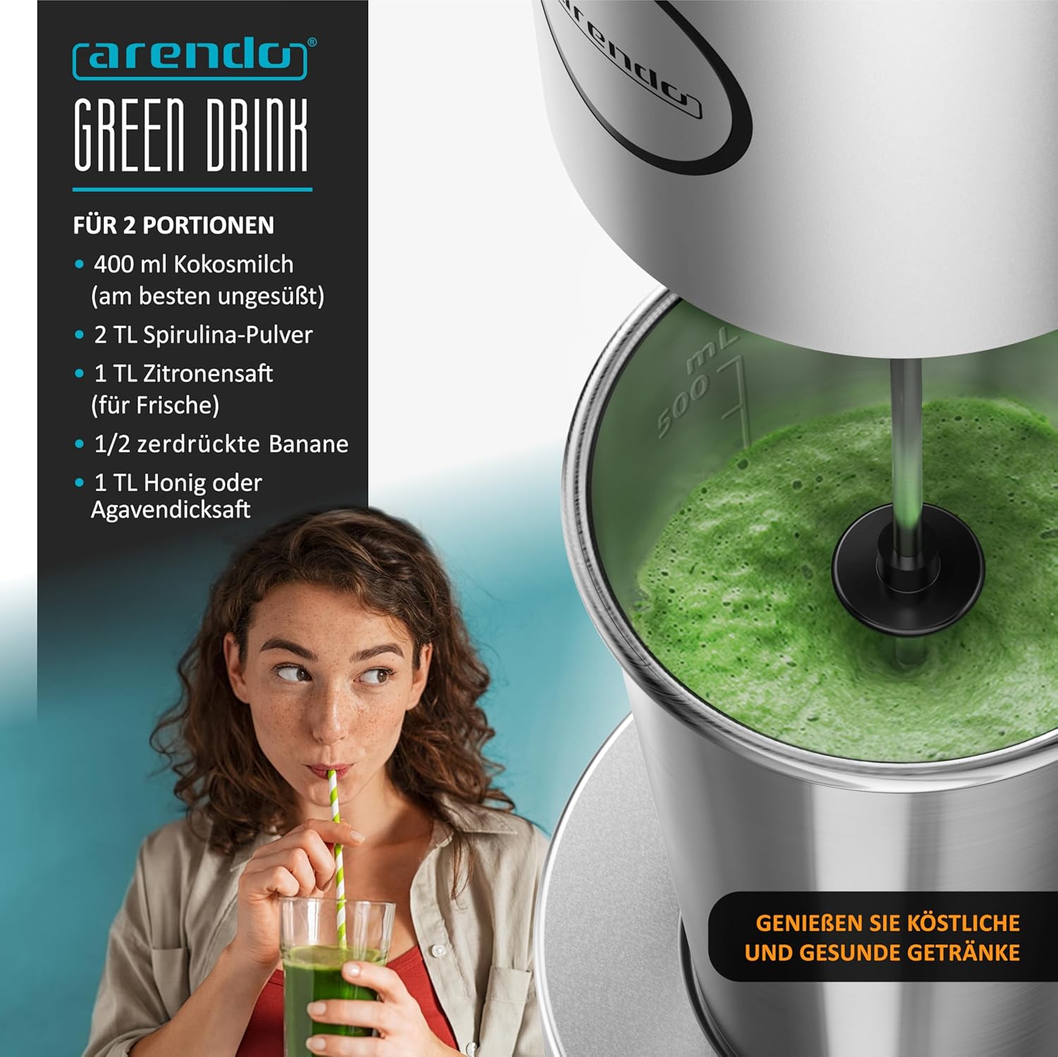 - TRINKTRÄUME AUS EIGENHERSTELLUNG: Der Arendo Getränkemixer ist ein Must-have für jede Küche. Machen Sie sich unabhängig von industriell gefertigten Getränken, von Plastikflaschen und unbekannten Inhaltsstoffen. Ihnen steht die ganze Bandbreite an