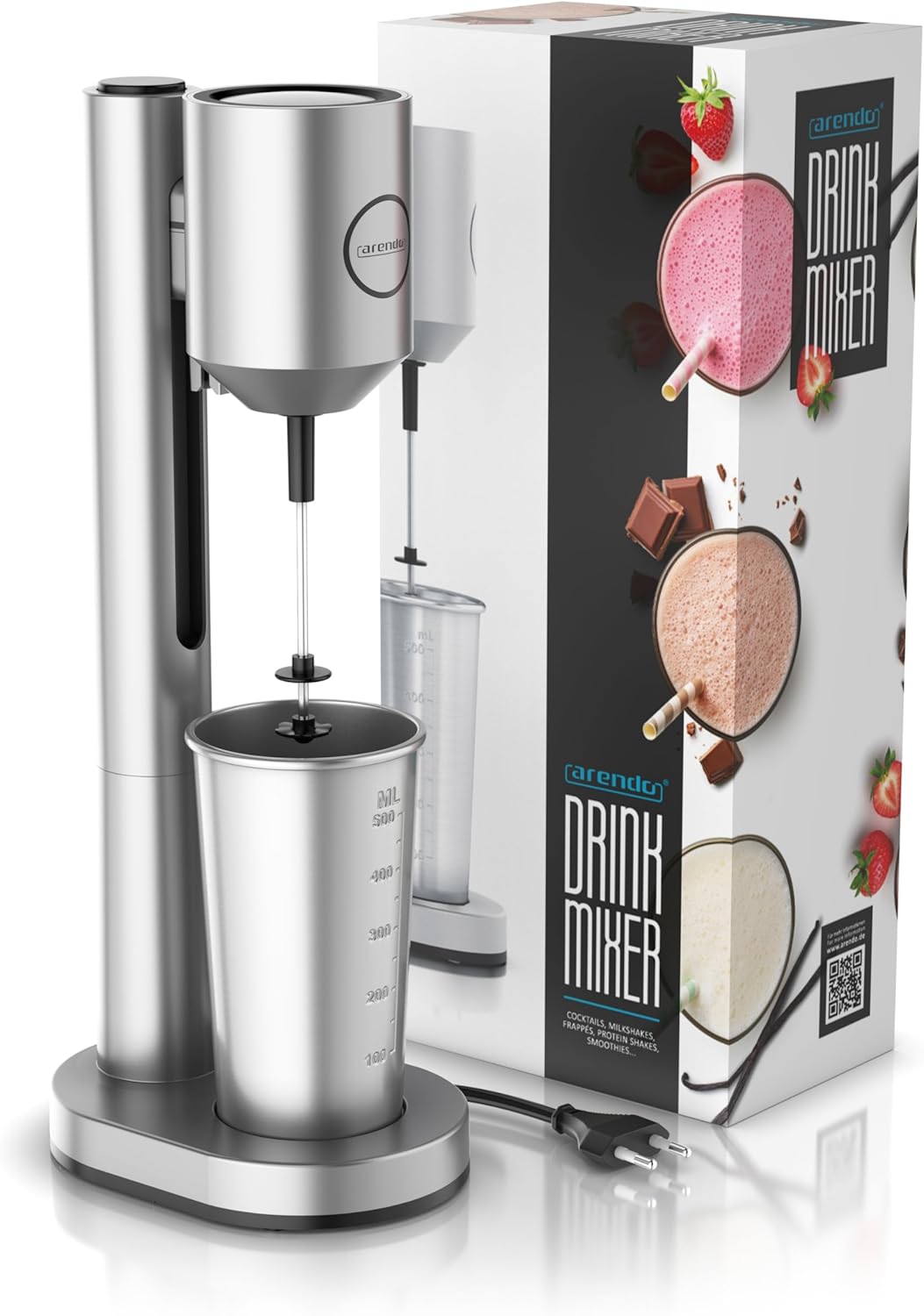 - ELEGANTER MIXER FÜR AUFREGENDE DRINKS. Im Gehäuse des Arendo Standmixers arbeitet ein 100 Watt Motor, der mit bis zu 22.000 Umdrehungen pro Minute in kürzester Zeit Sahne und Eischnee rührt. Auch Kaffeemischgetränke, Cocktails, Fruchtsäfte und