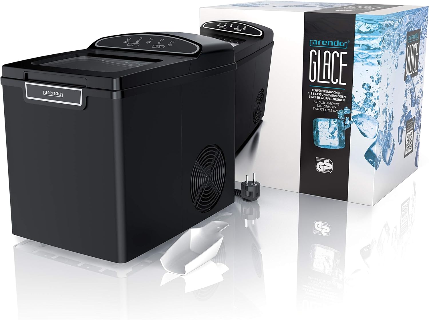 - Mit der Arendo 1,8 Liter Eiswürfelmaschine erhalten Sie Ihre Eiswürfel genau dann, wenn Sie sie brauchen und müssen nicht auf gefrierendes Wasser im Eisfach warten. Ein Produktionslauf dauert nur 7,5 (Einstellung klein) Minuten. Schon können Sie