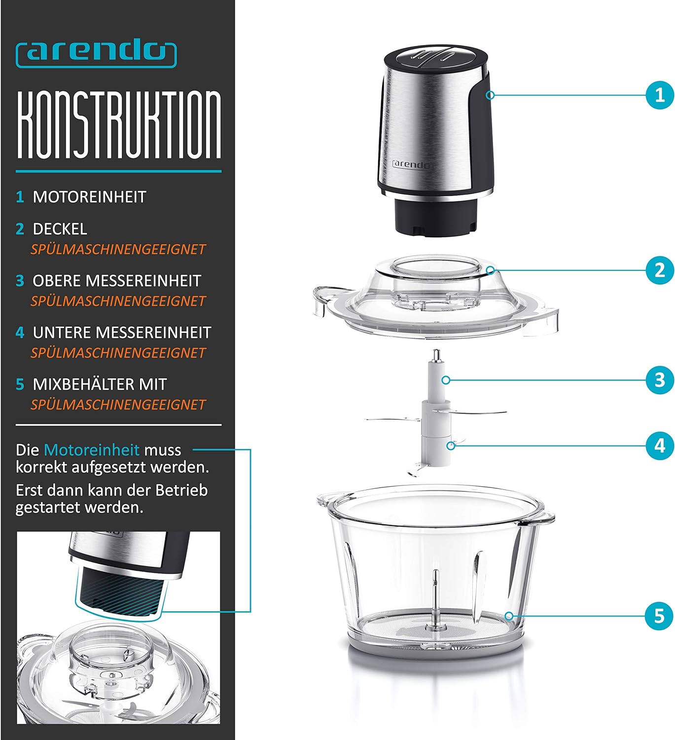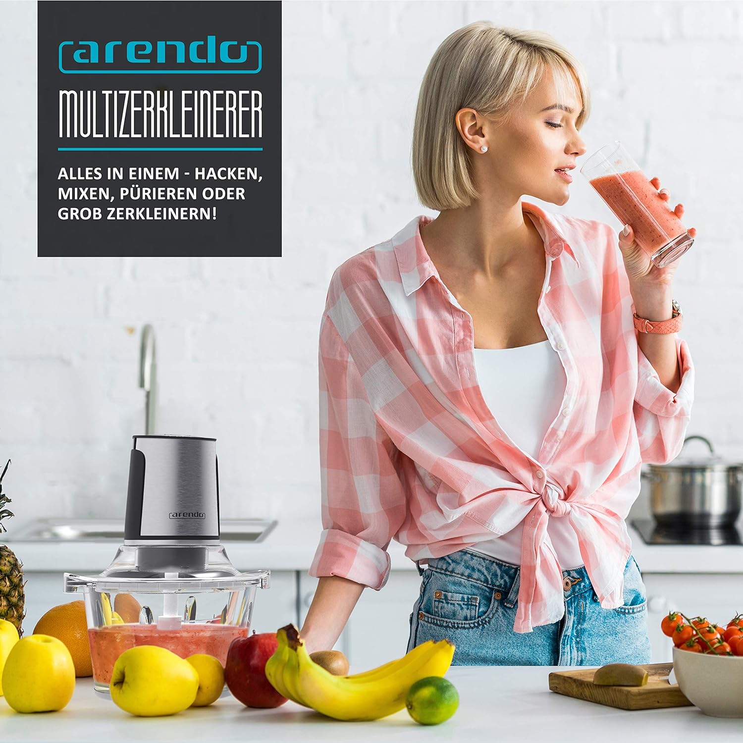 - Wer gerne frisch und viel kocht, kennt die Arbeit und Zeit, die bei der Vorbereitung der Lebensmittel anfällt. Der elektrische Multizerkleinerer von Arendo ermöglicht einen besonders effizienten Ablauf. Mit seinen vier Ober- und Untermessern aus