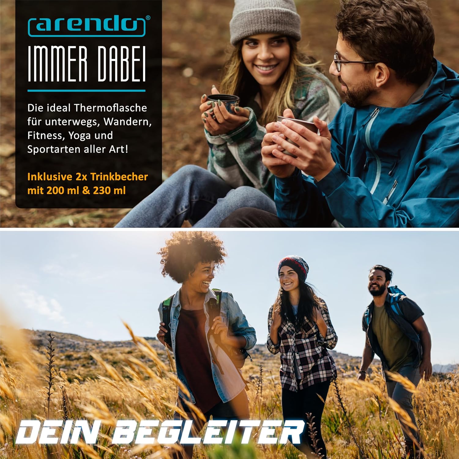 - ZWEI PRAKTISCHE TRINKBECHER INKLUSIVE: Der Deckel der Thermoskanne ist clever designt mit zwei ineinander gesteckten Bechern, sodass zwei Personen gleichzeitig trinken können. Die Becher bieten ein Volumen von 230 ml bzw. 200 ml für den spontanen
