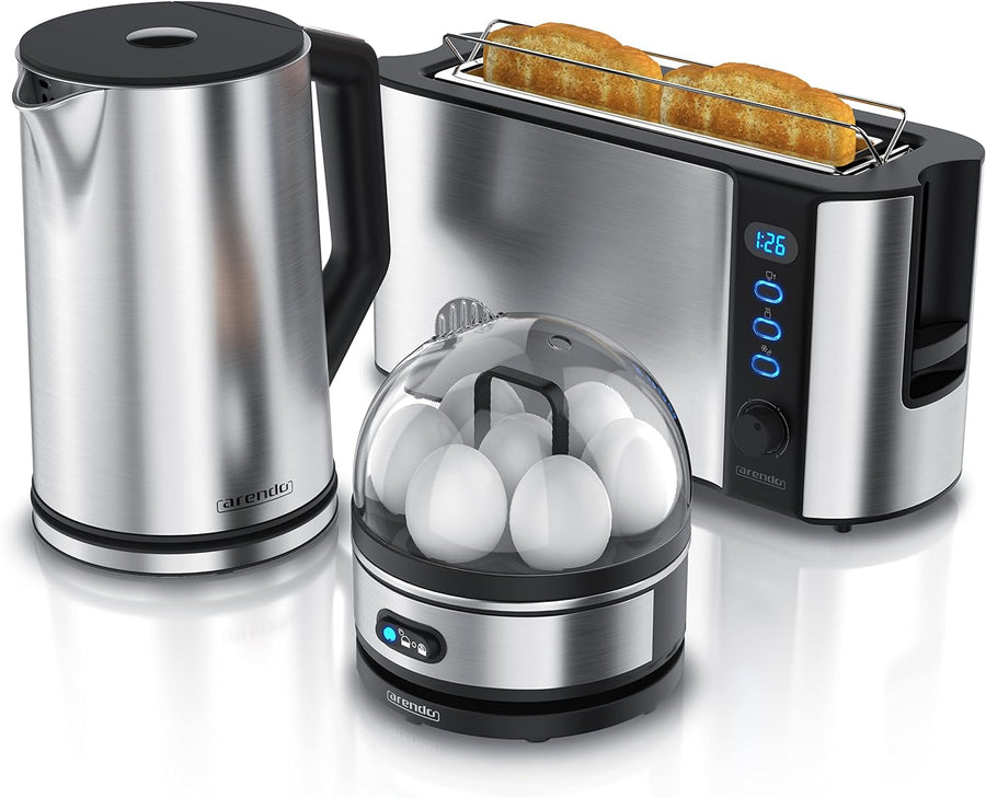 - LIEFERUMFANG: Wasserkocher ELEGANT + Toaster FRUKOST + Eierkocher SEVENCOOK + Bedienungsanleitungen