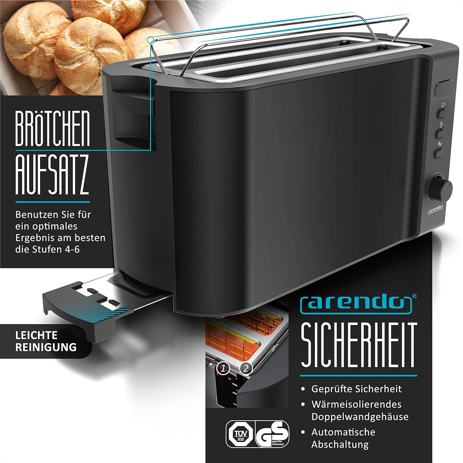 - TOASTEN SIE VIER LECKERE TOASTSCHEIBEN AUF EINMAL! Der1500 Watt starke FRUKOST Doppellangschlitztoaster bietet eine umfangreiche Ausstattung mit höchstem Bedienkomfort: LED-Display mit Restzeitanzeige | 6 Bräunungsgrade | Auftau- und Aufwärmfunktion | integrierter Brötchenaufsatz | Brotscheibenzentrierung | Doppelwandgehäuse | Krümelschublade | automatische Abschaltung | Anti-Rutsch-Füsse | GS-Geprüfte Sicherheit | Abmessungen: Länge 38,5 x Breite 19 x Höhe 19,5 cm.